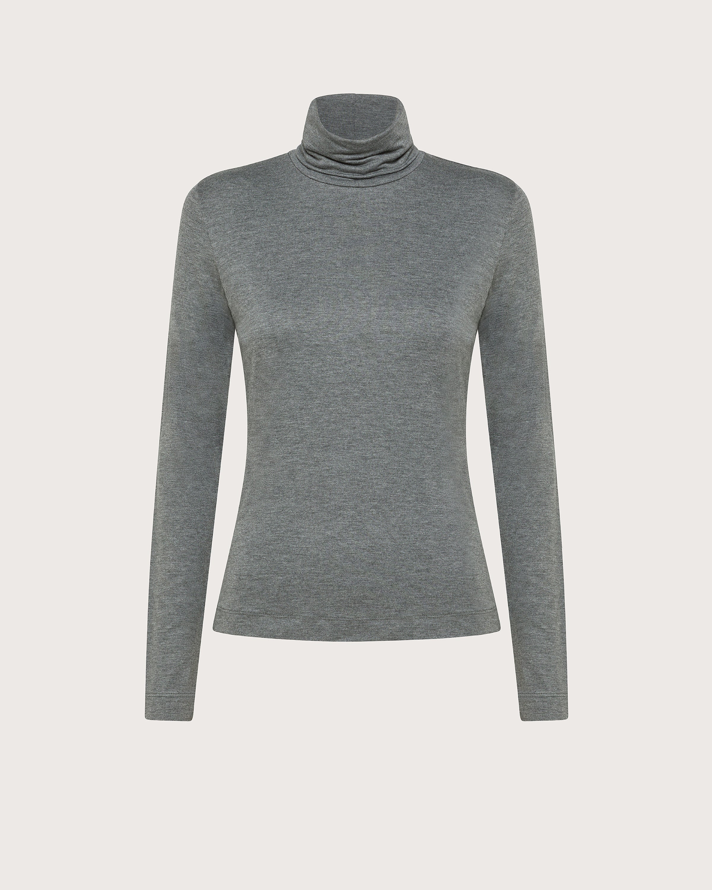 Dolcevita maniche lunghe realizzato in jersey unito bistretch. Tinta unita.