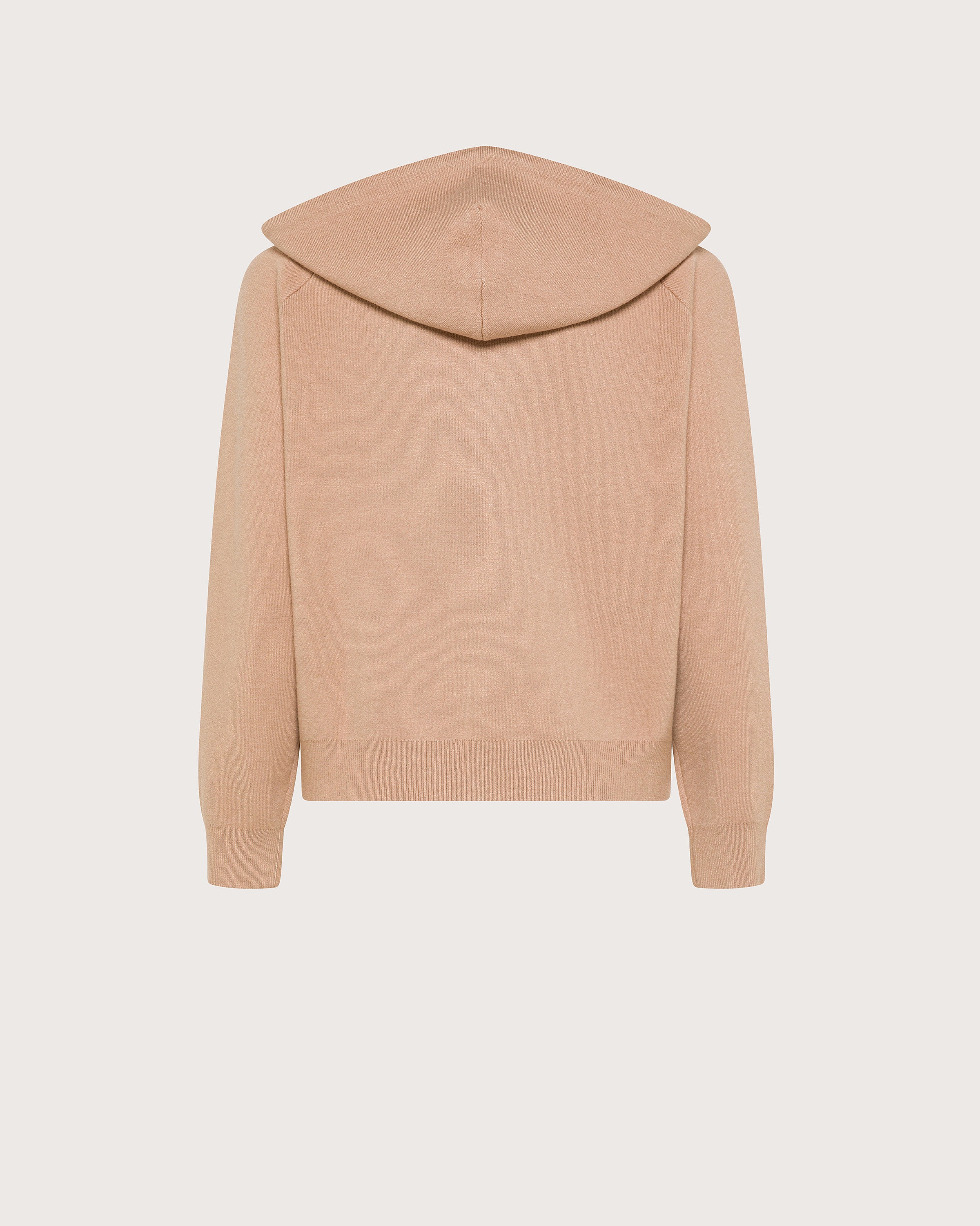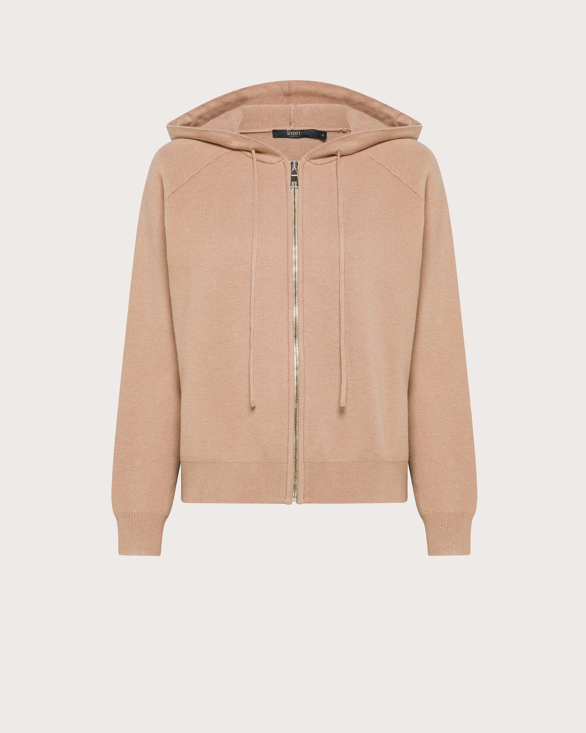 Felpa con cappuccio realizzata in punto tessuto viscosa. Chiusura frontale con zip. Polsini e fondo a costine.