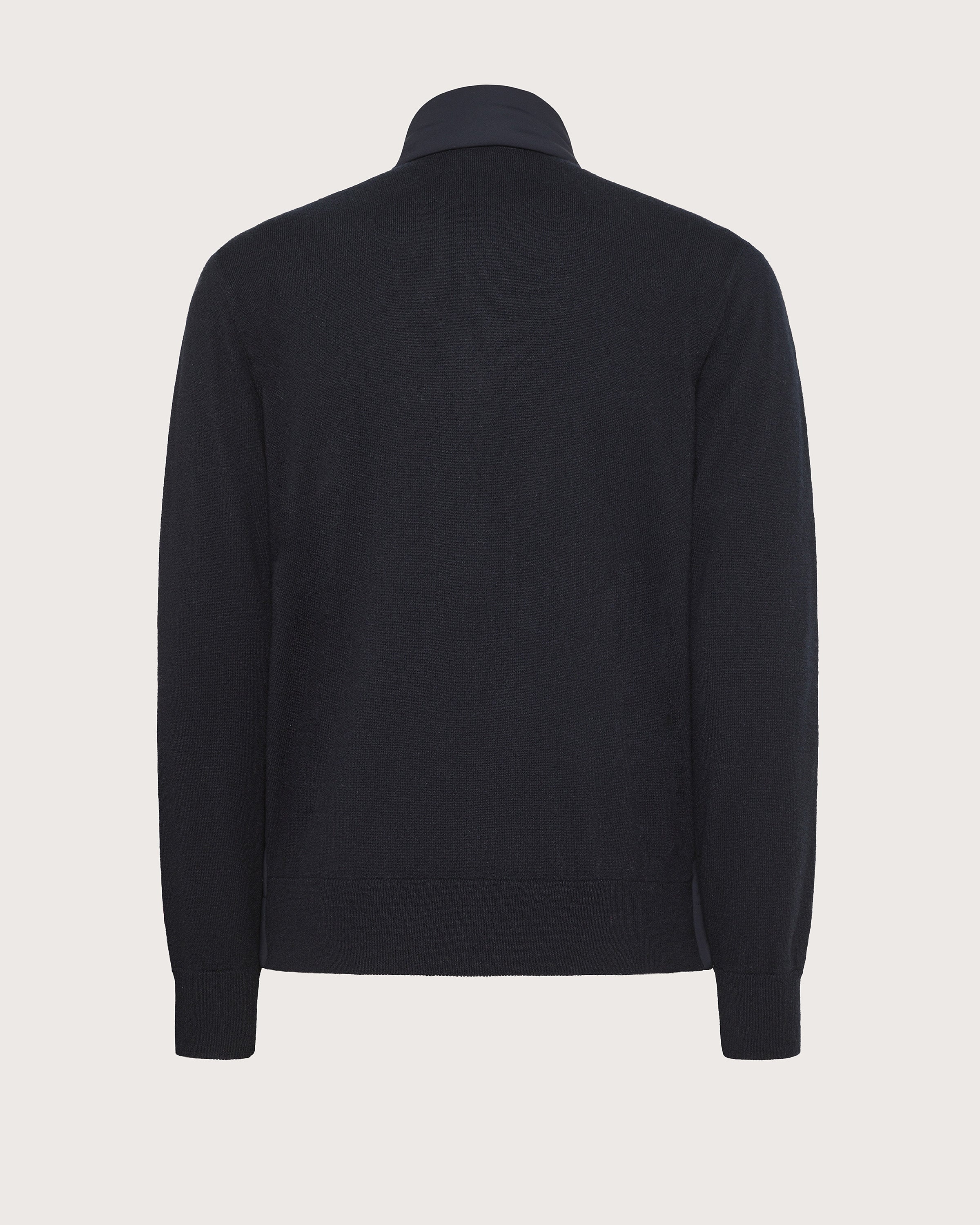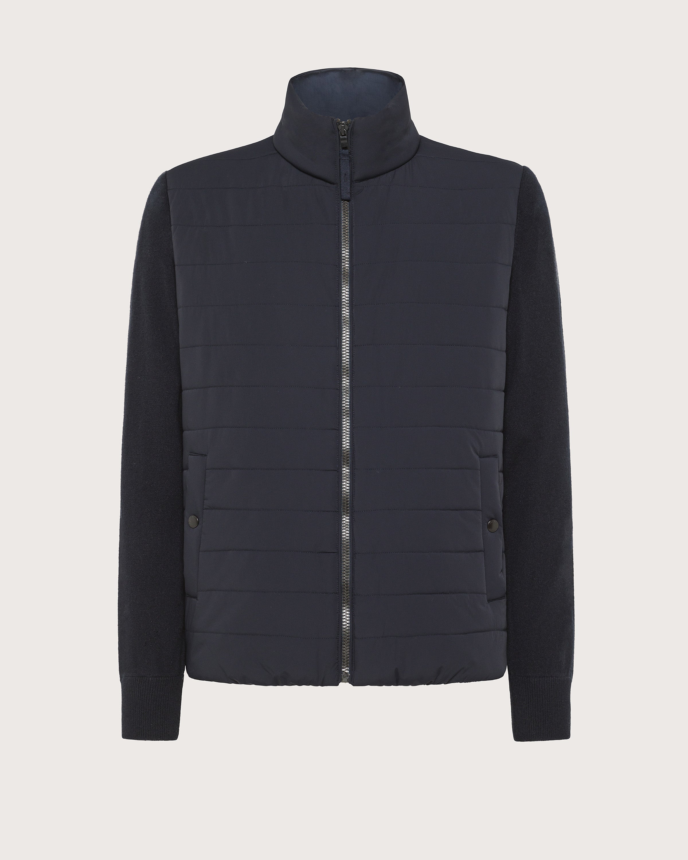 Giubbino tricot con davanti imbottito. Collo a fascetta, chiusura frontale con zip e tasche monofiletto con bottone. Tasca interna con zip.