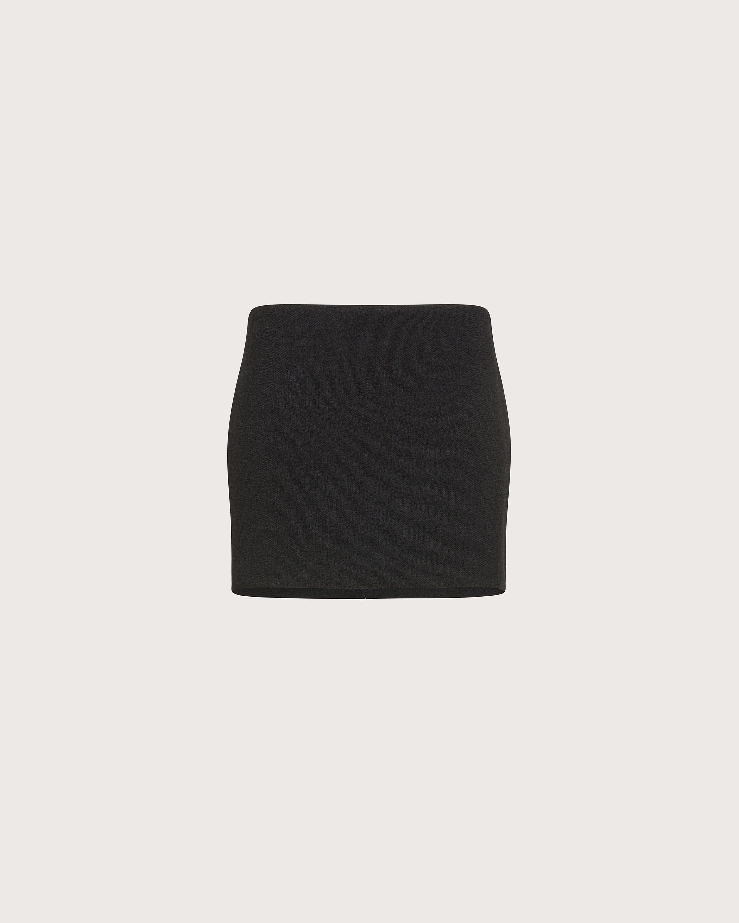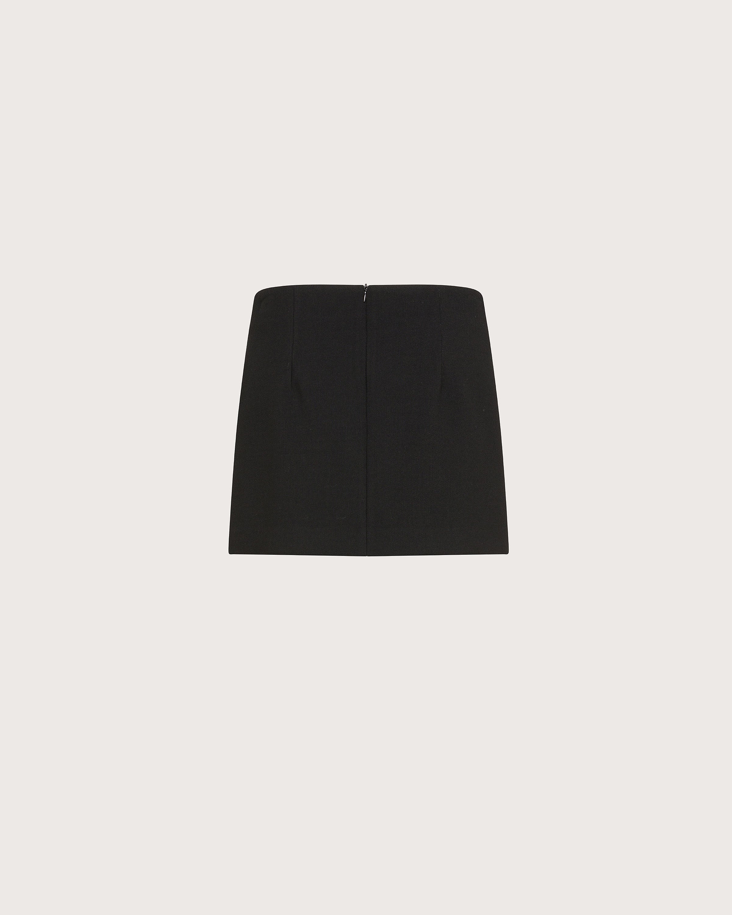 Gonna corta realizzata doppia tela misto lana bistretch. Zip invisibile sul retro.