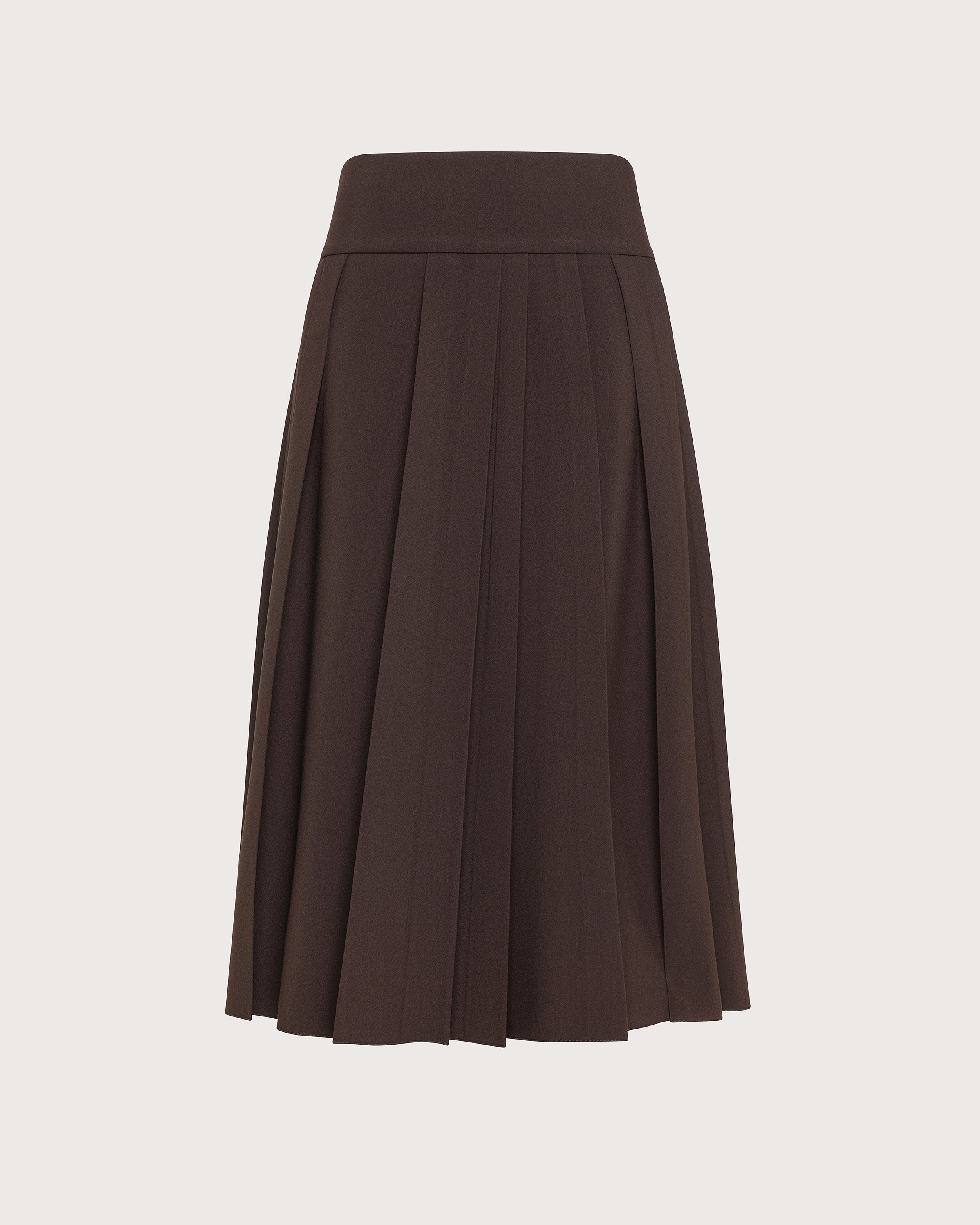 Gonna longette a pieghe in tessuto poly stretch. Baschina e pieghe irregolari.