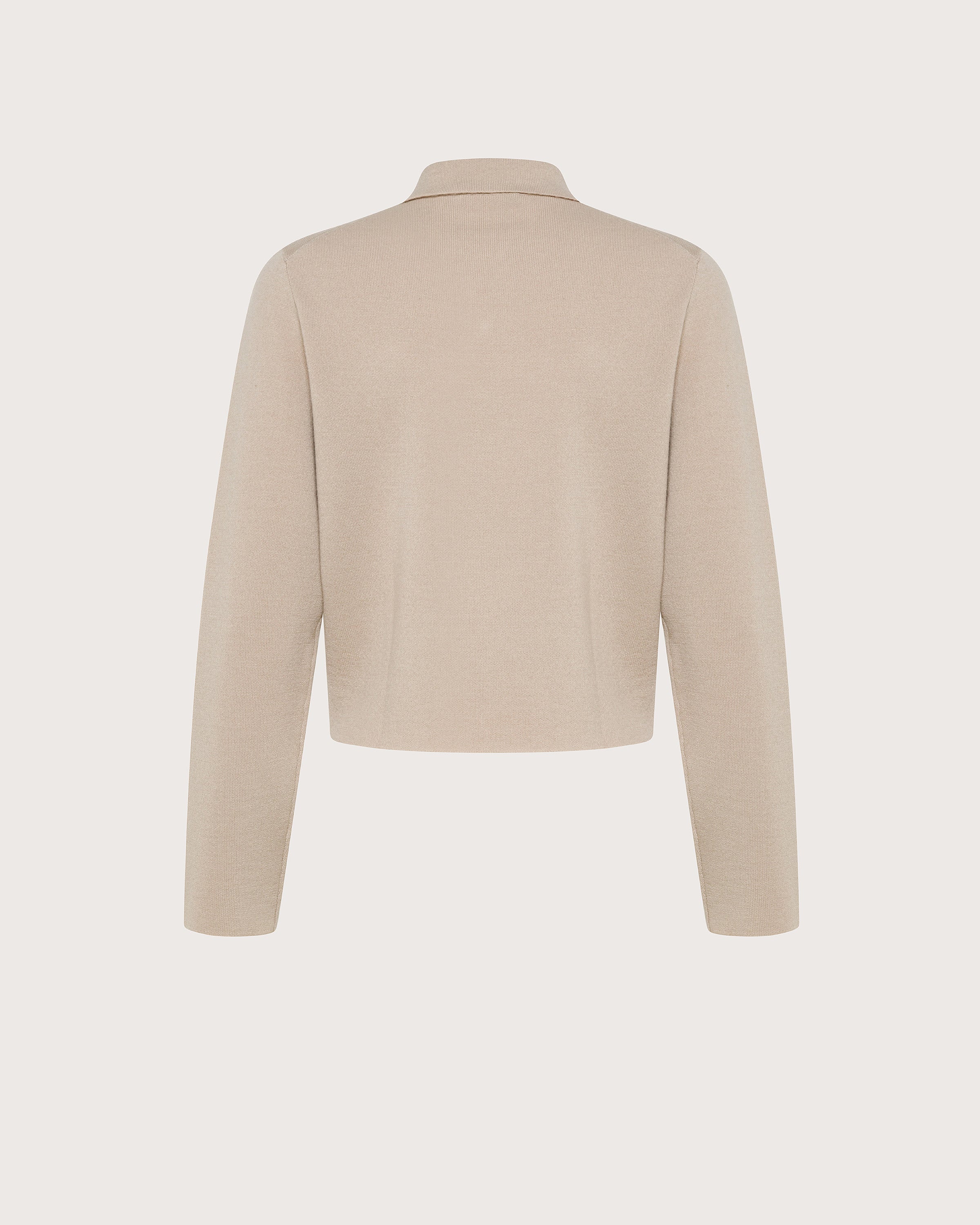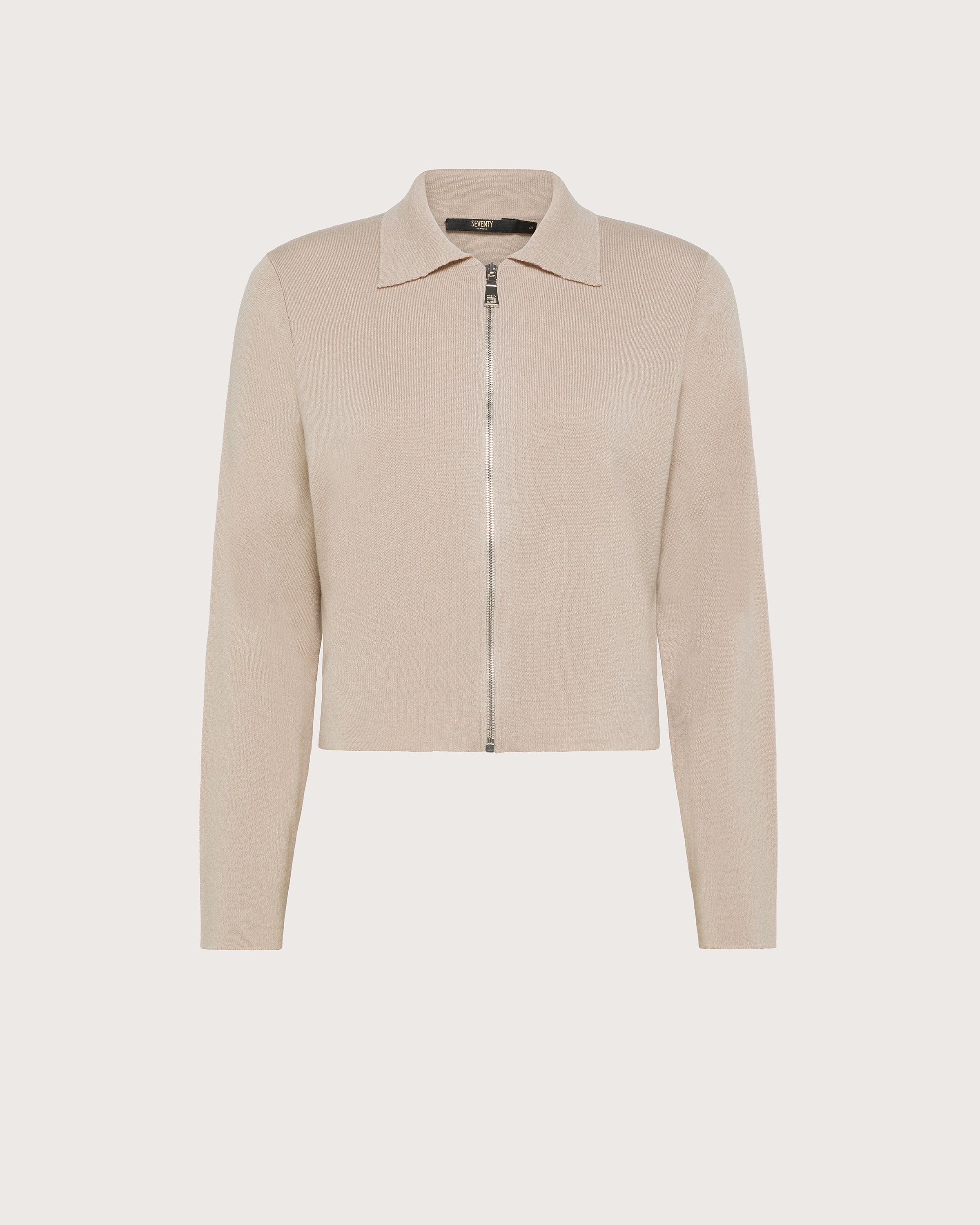 Maglioncino con colletto e zip realizzato in maglia unita f.14 misto lana.
