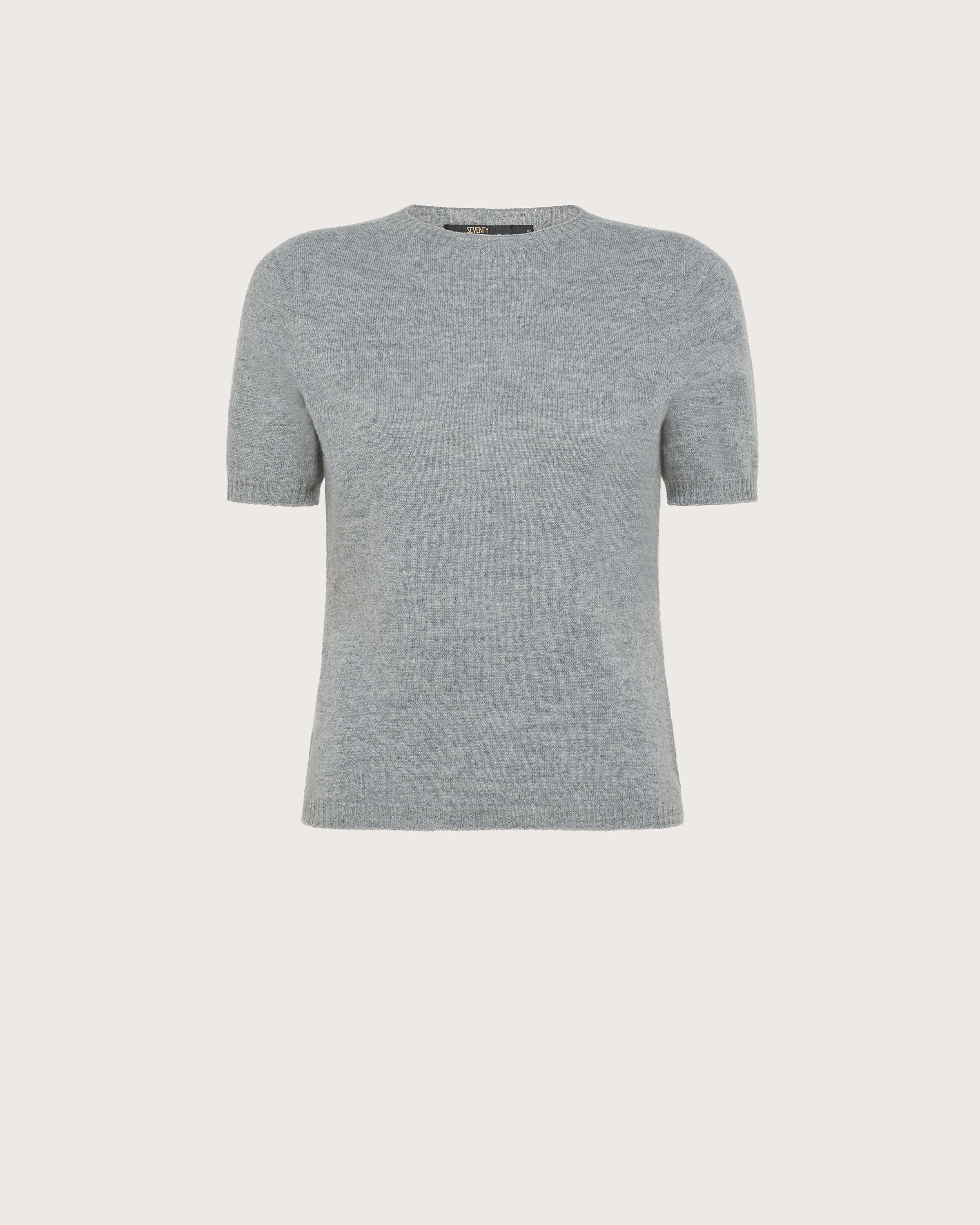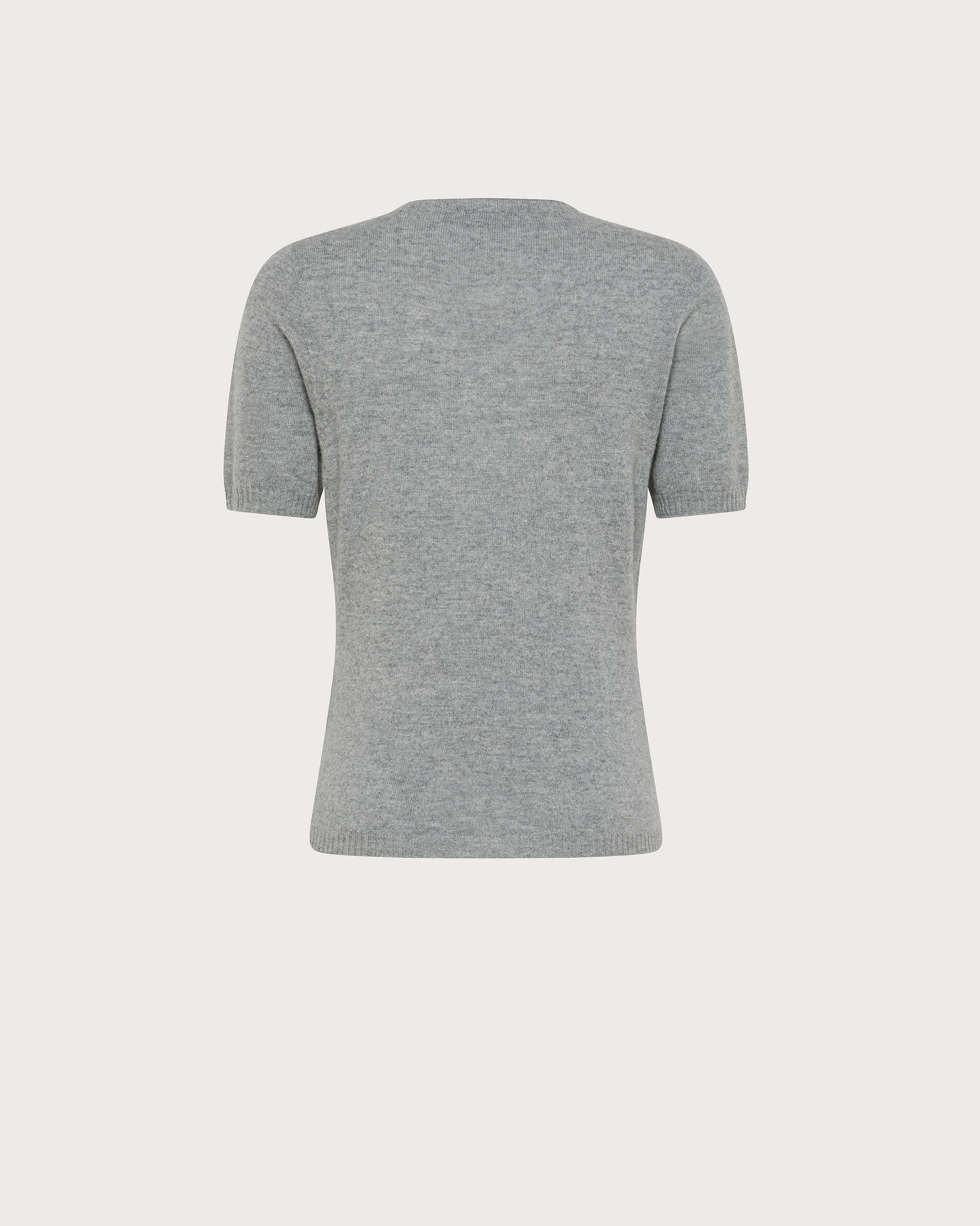 Maglioncino maniche corte realizzato in rasato capo integrale cashmere/lana. Polsini, fondo e girocollo a costine.