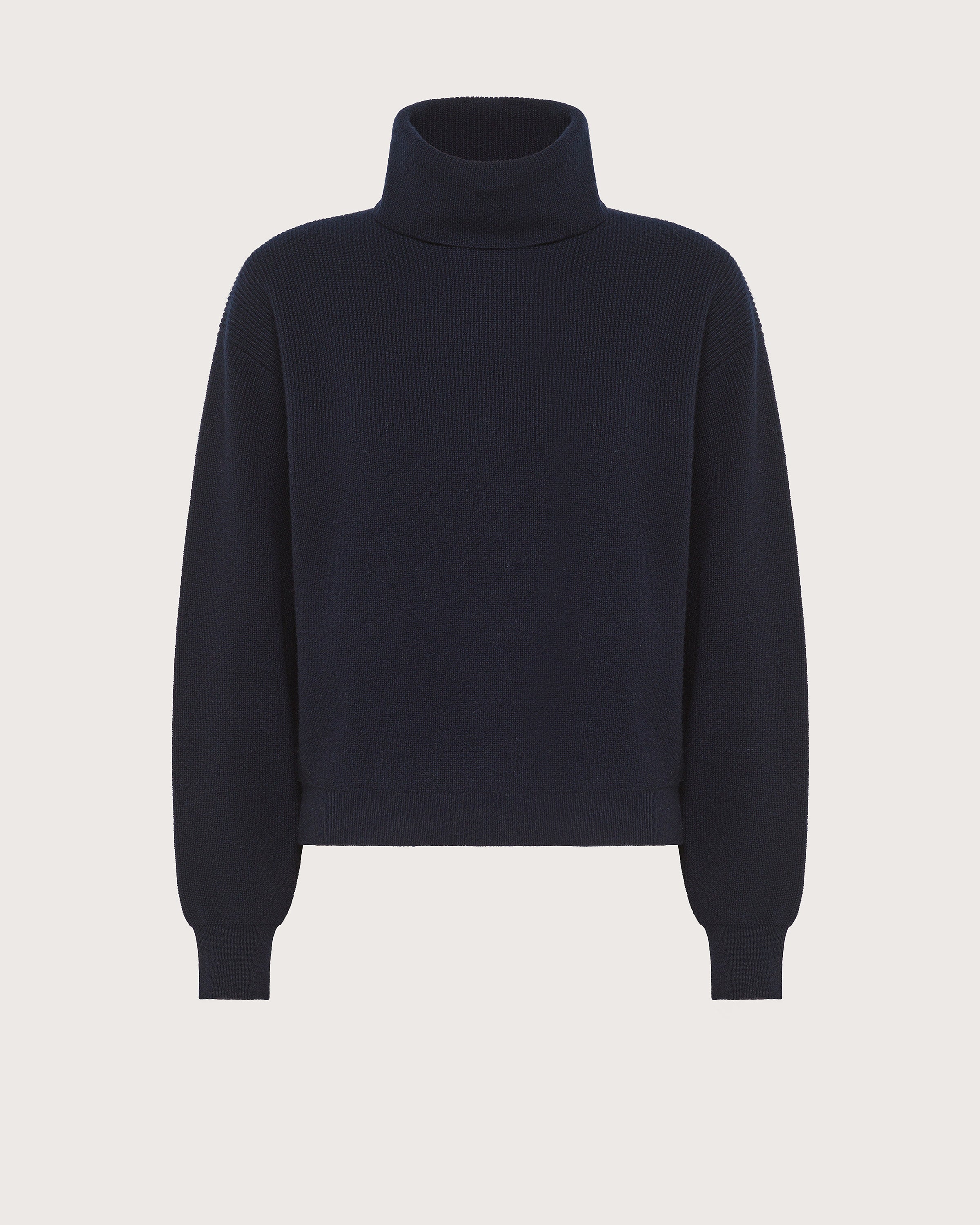 Maglione collo alto realizzato in vari punti misto lana. Polsini e fondo a costine. Tinta unita. Vestibilità morbida.
