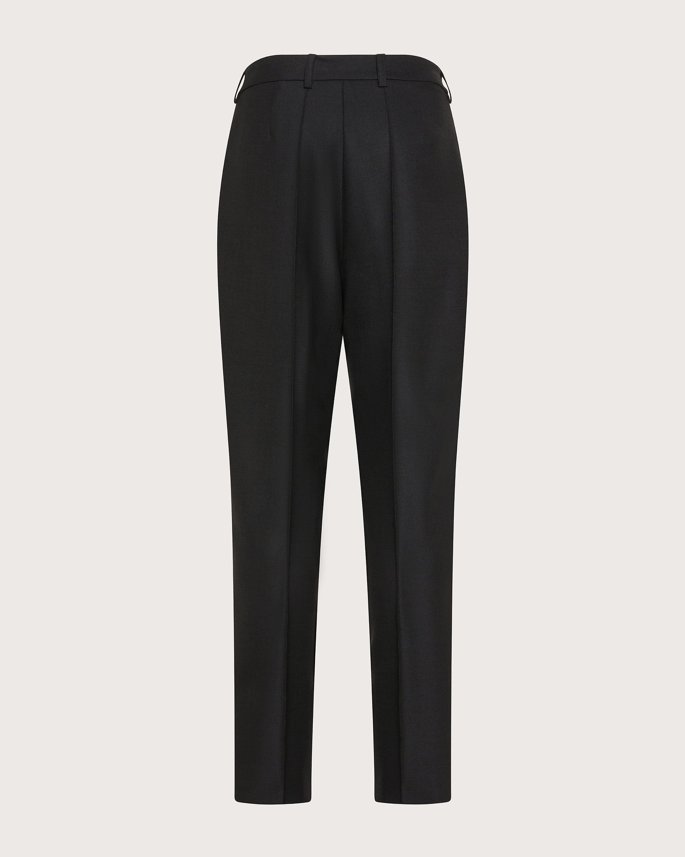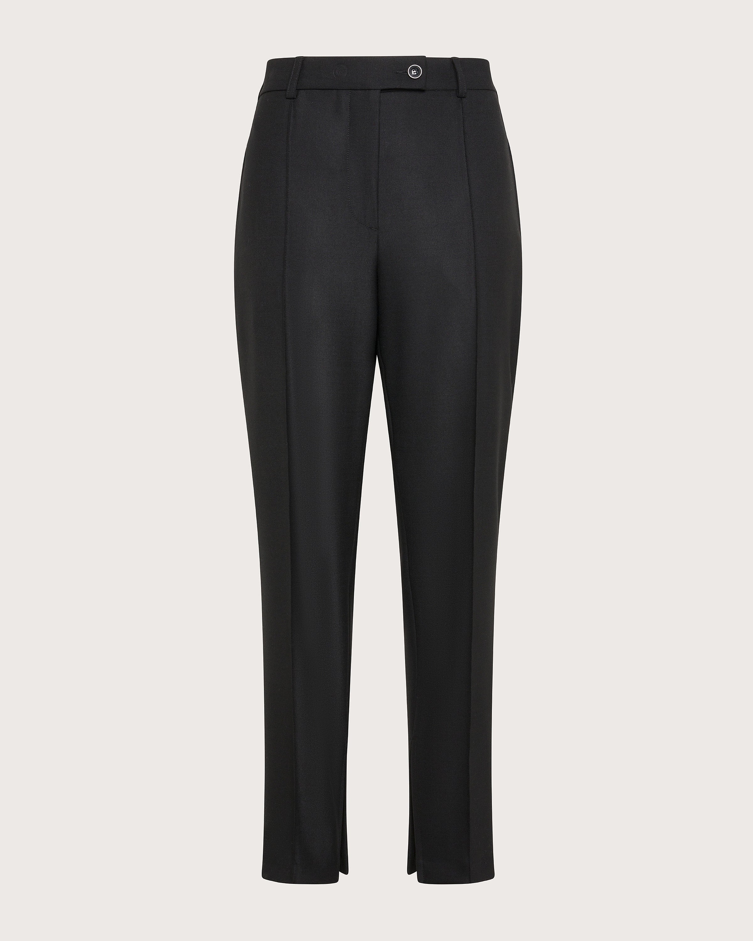 Pantalone carrot fit con spacchetto alla caviglia realizzato in nattè misto lana bistretch. Dettaglio di nervatura impunturata davanti. Chiusura anteriore con cerniera, bottone interno e bottone esterno.