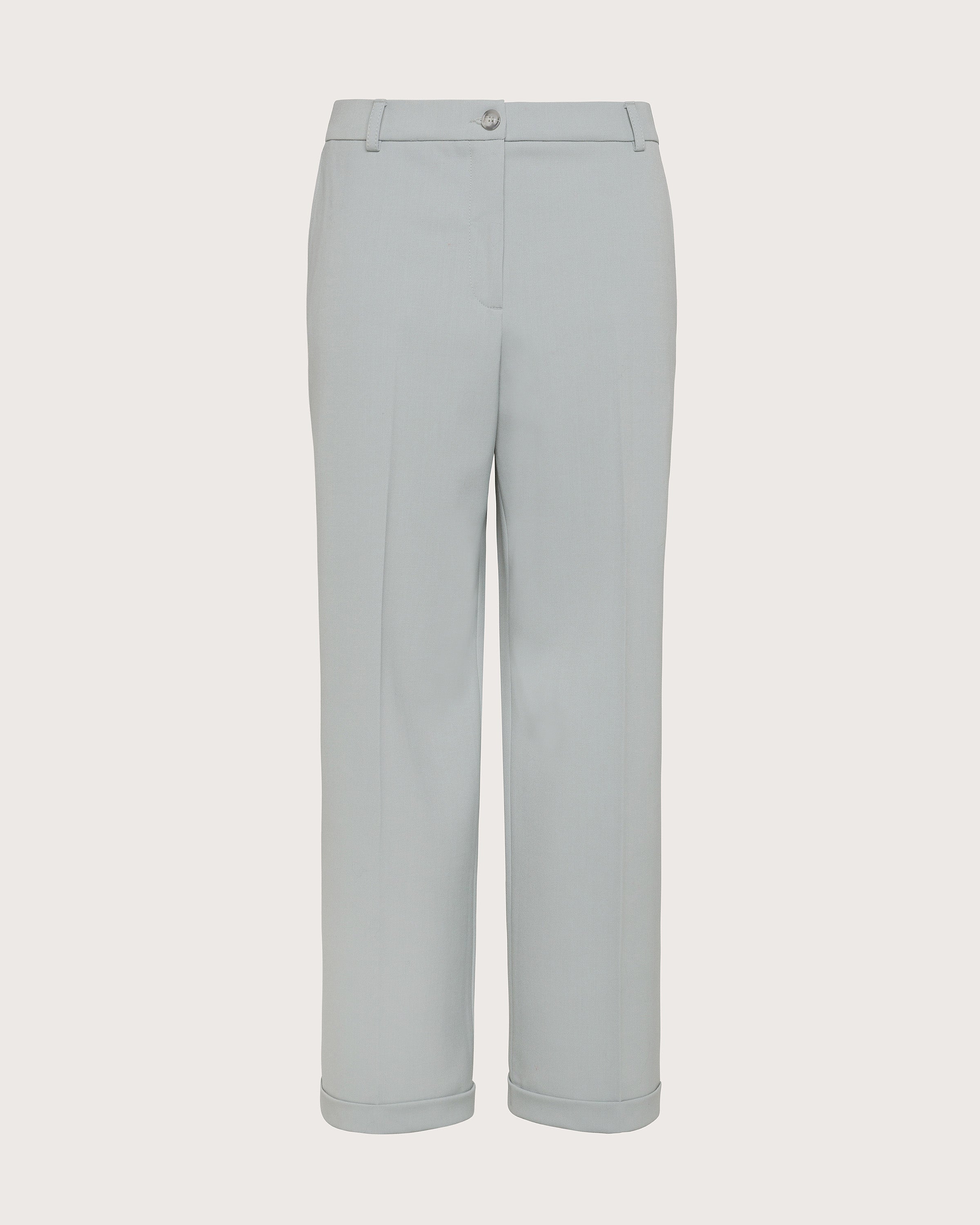 Pantalone dritto lungo la caviglia con risvoltino al fondo