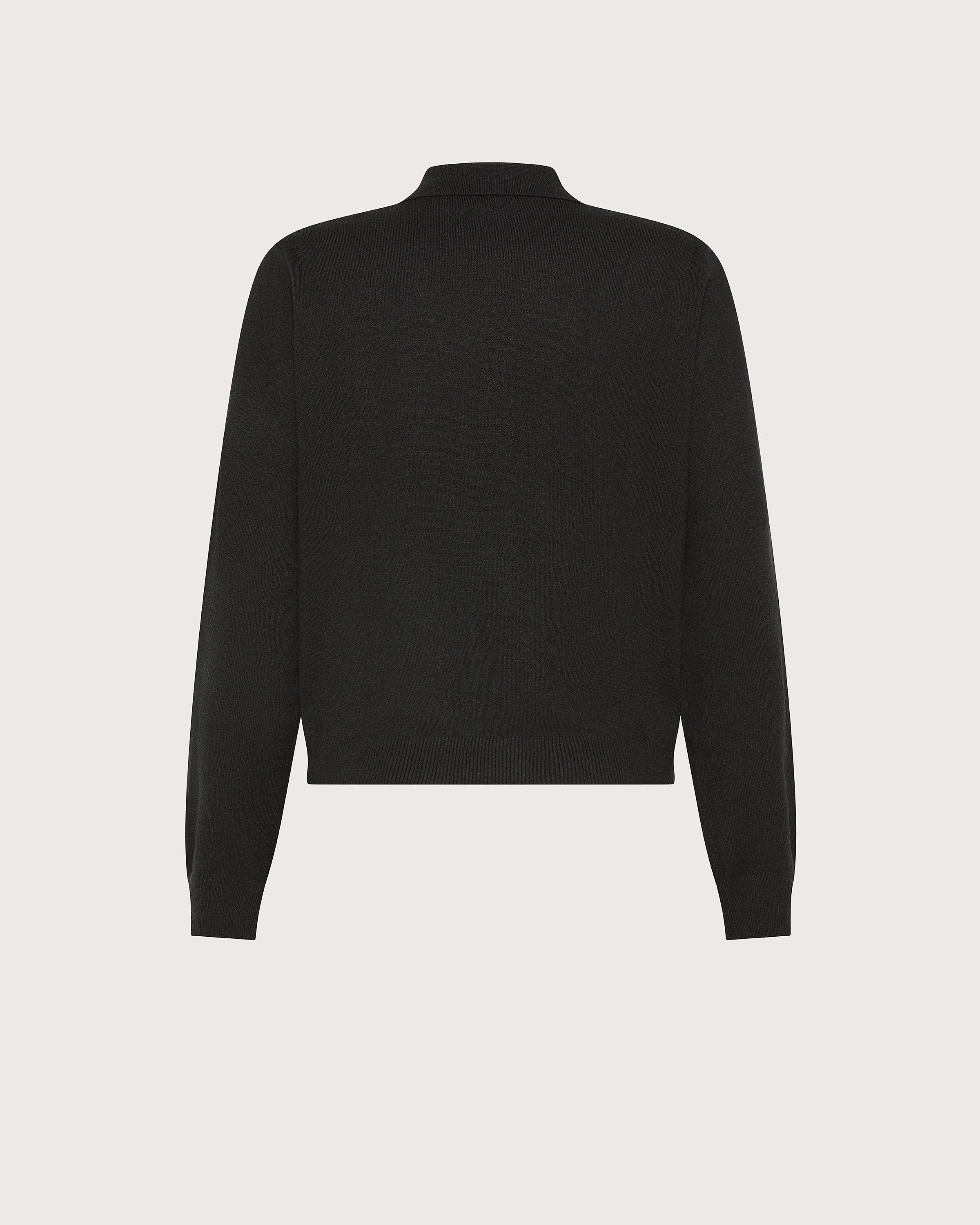 Polo a maniche lunghe tinta unita realizzata in punto tessuto viscosa stretch. Colleto e abbottonatura frontale. Polsini e fondo a costine.