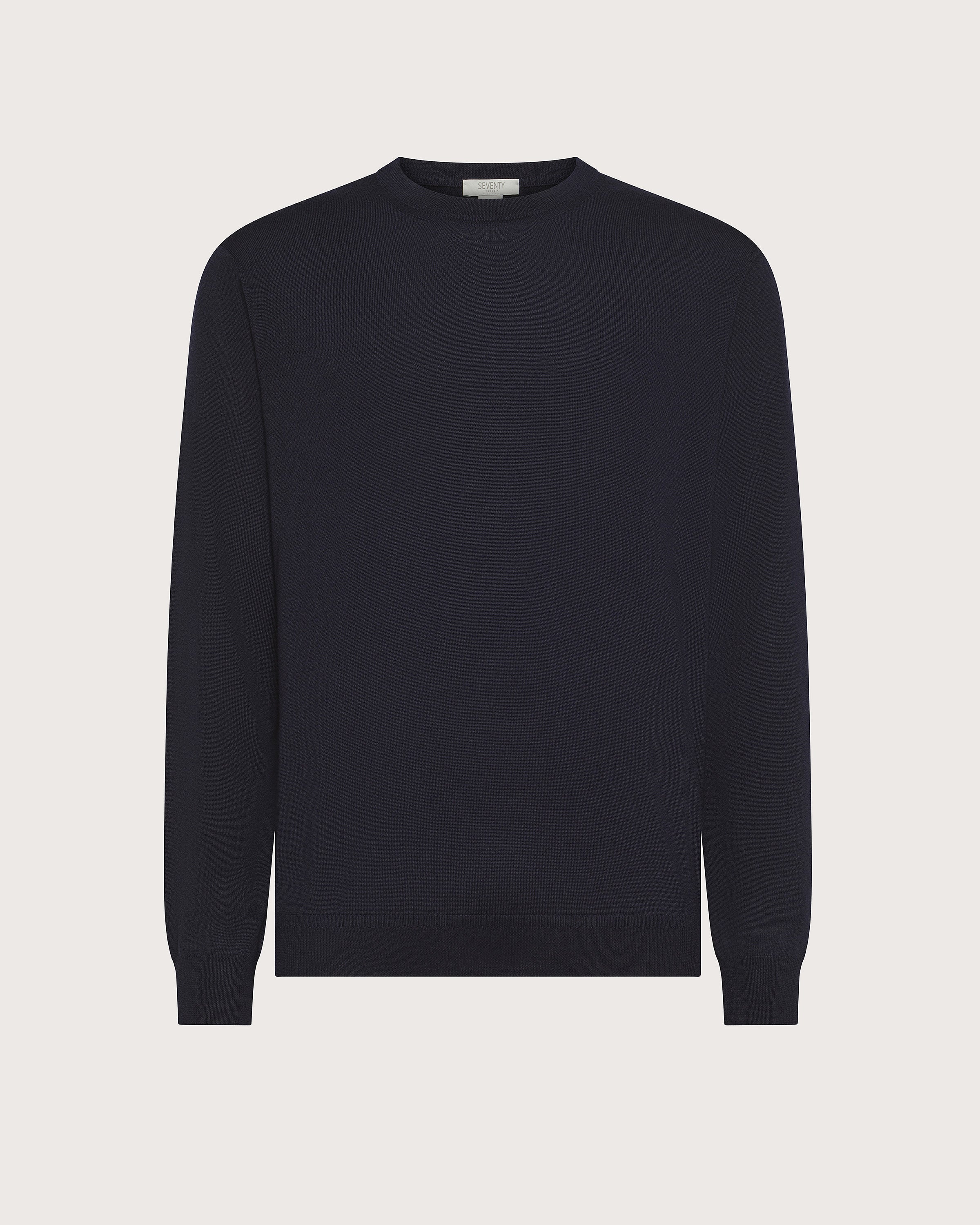 14-gauge basic plain knit crewneck sweater with rib detail on cuffs and hems. Pure wool.