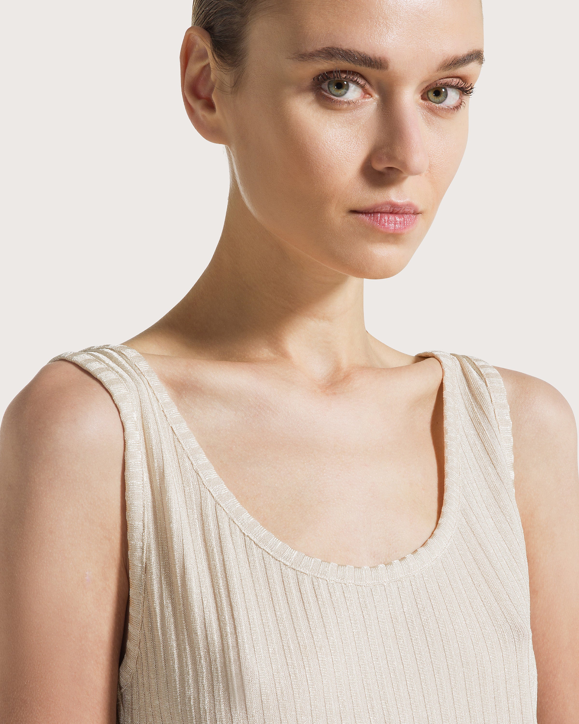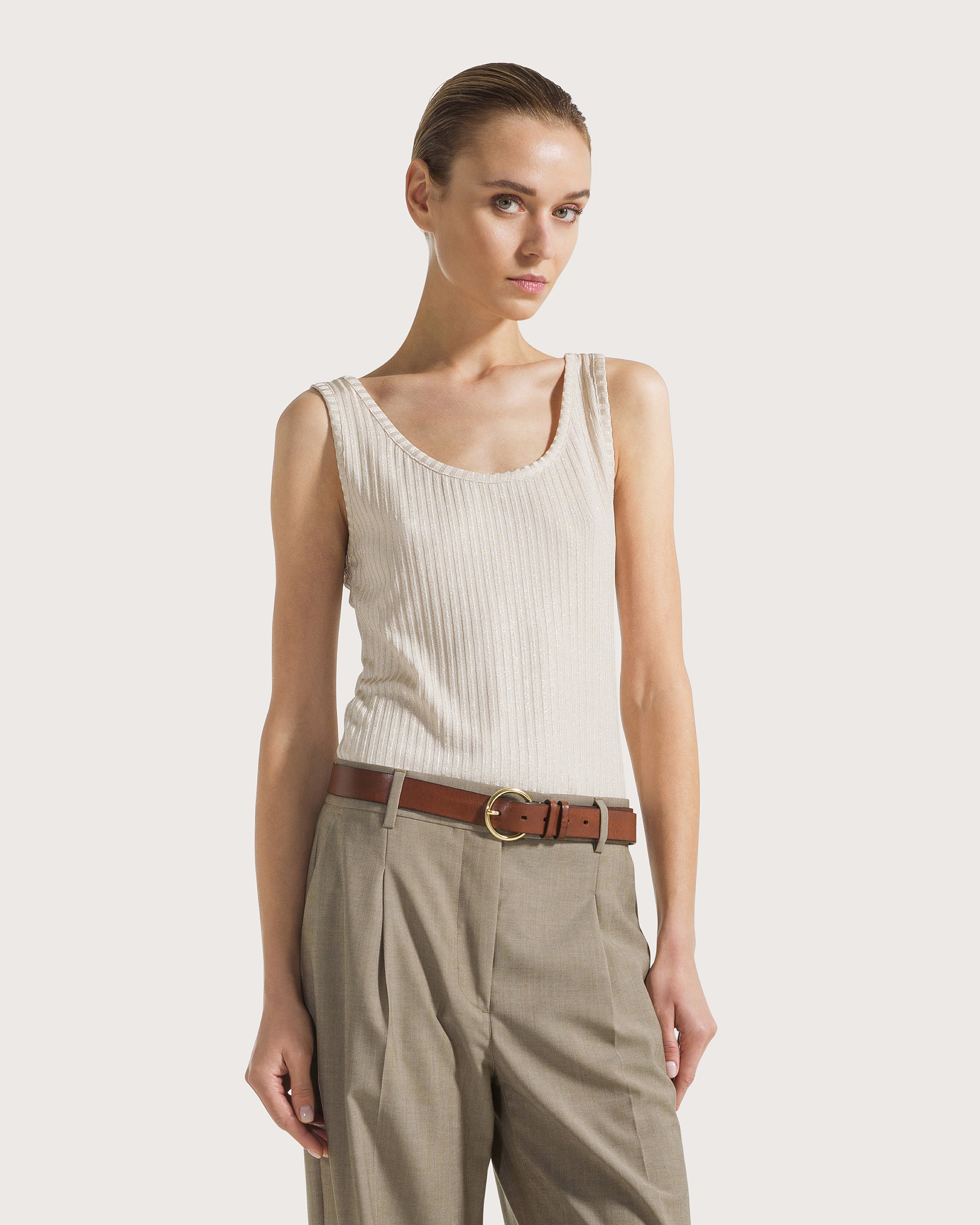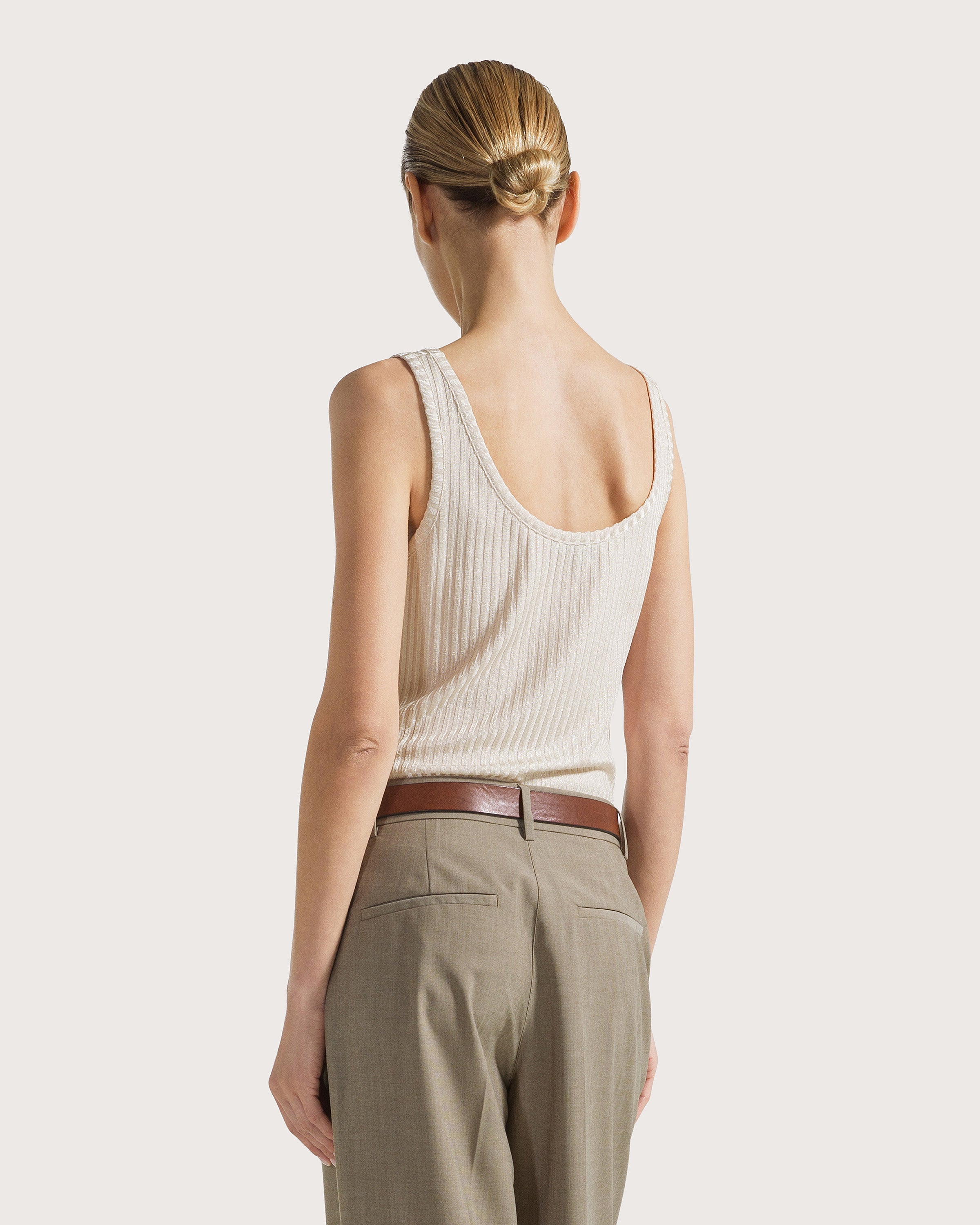 Laminated ribbed tank top.