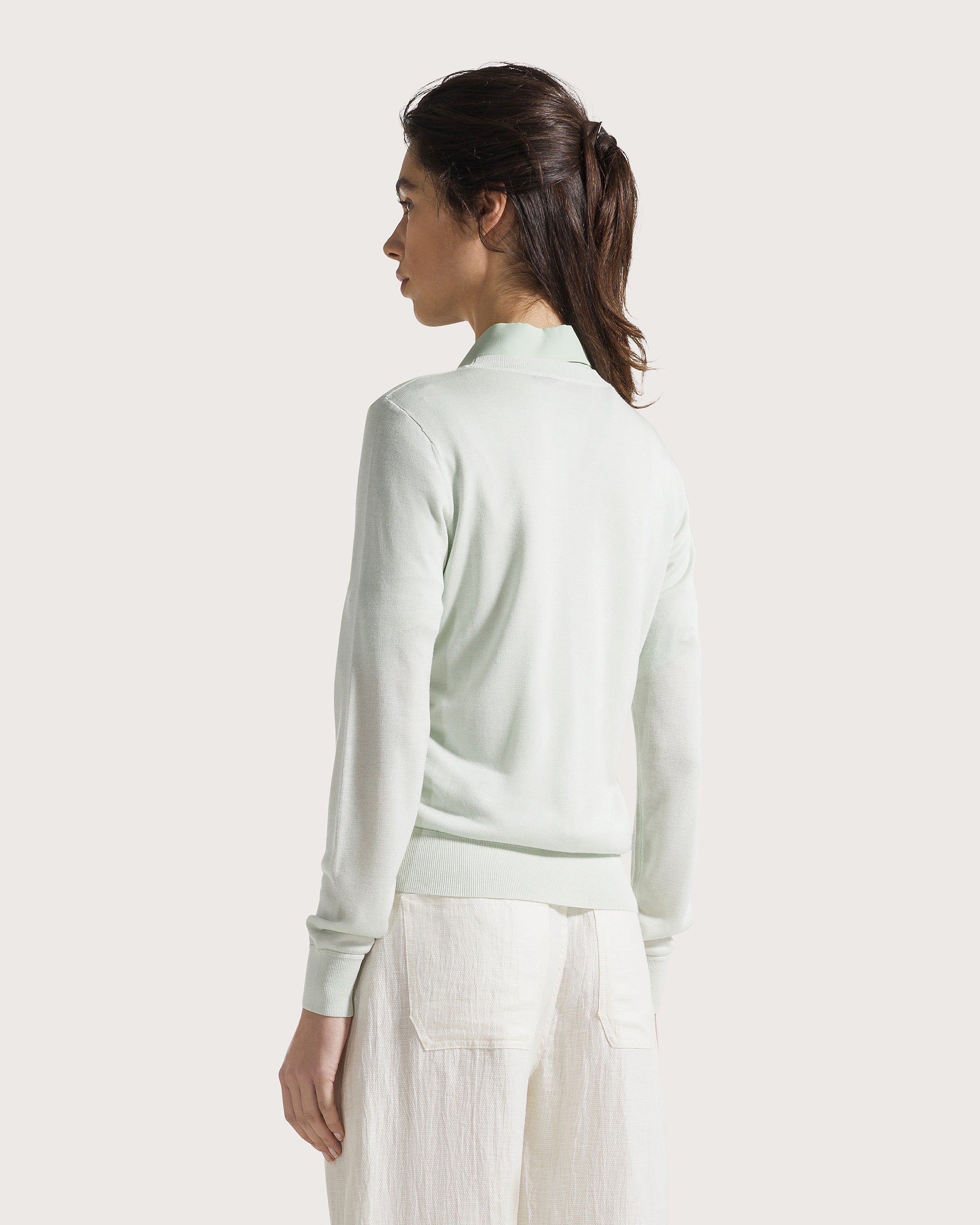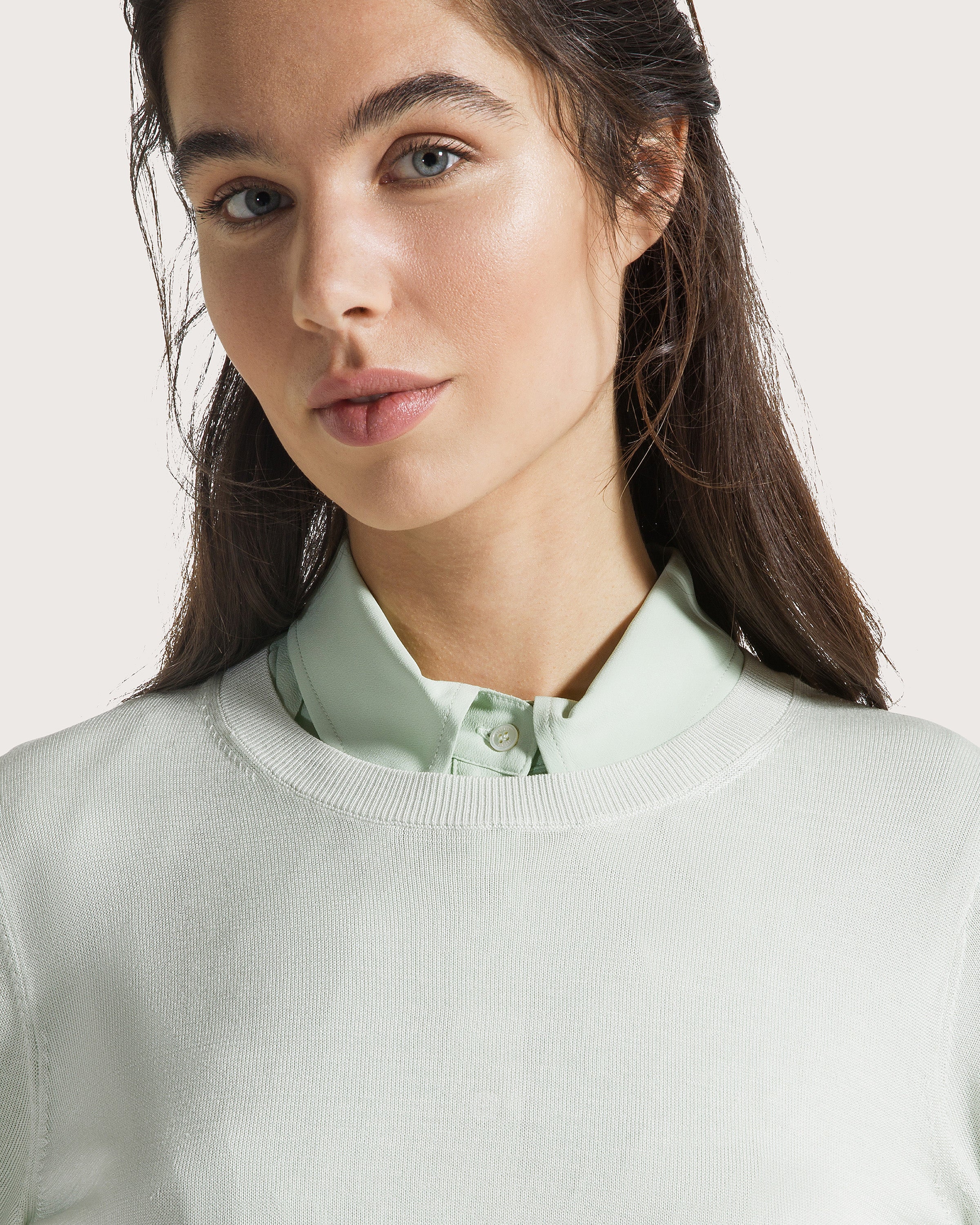 Long-sleeved crewneck sweater in viscose silk.