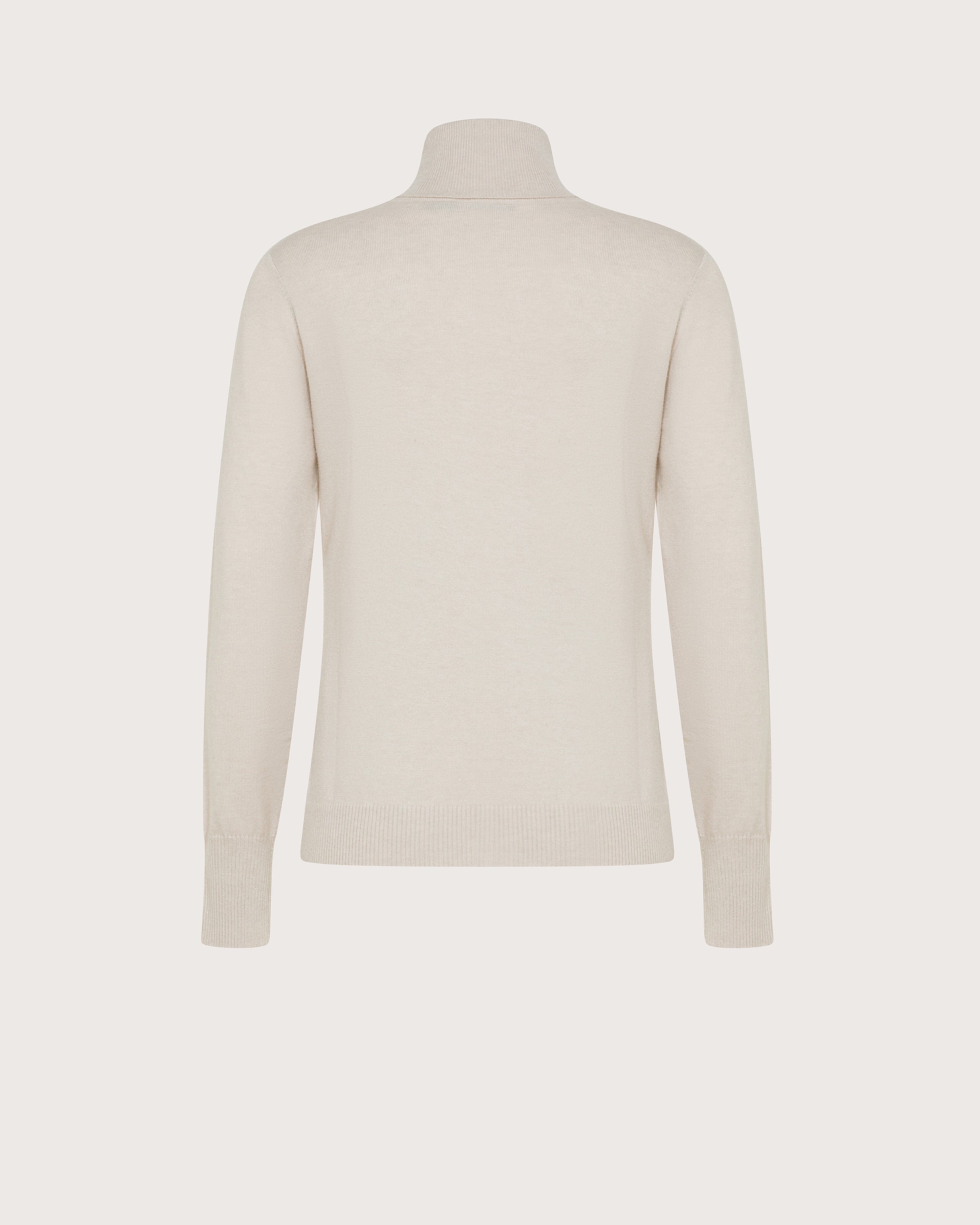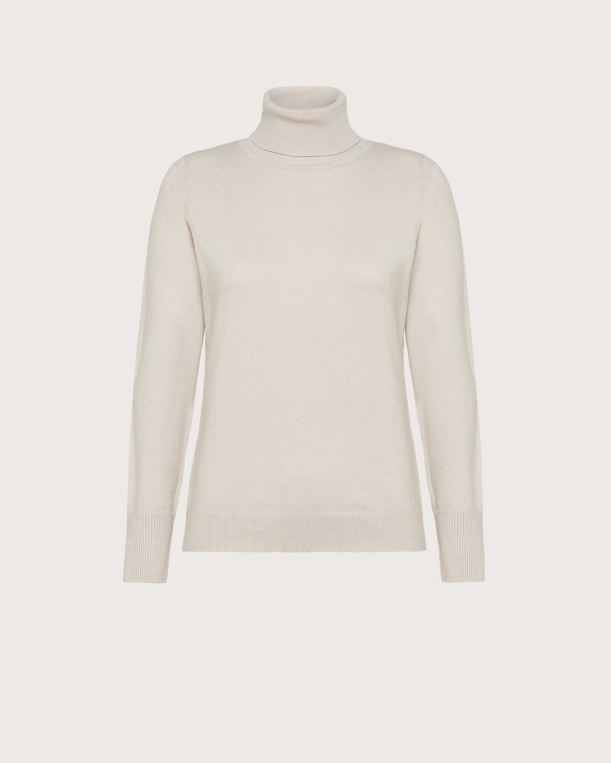 Maglione realizzato in viscosa stretch f.12 a collo alto. Polsini, fondo e collo a costine.