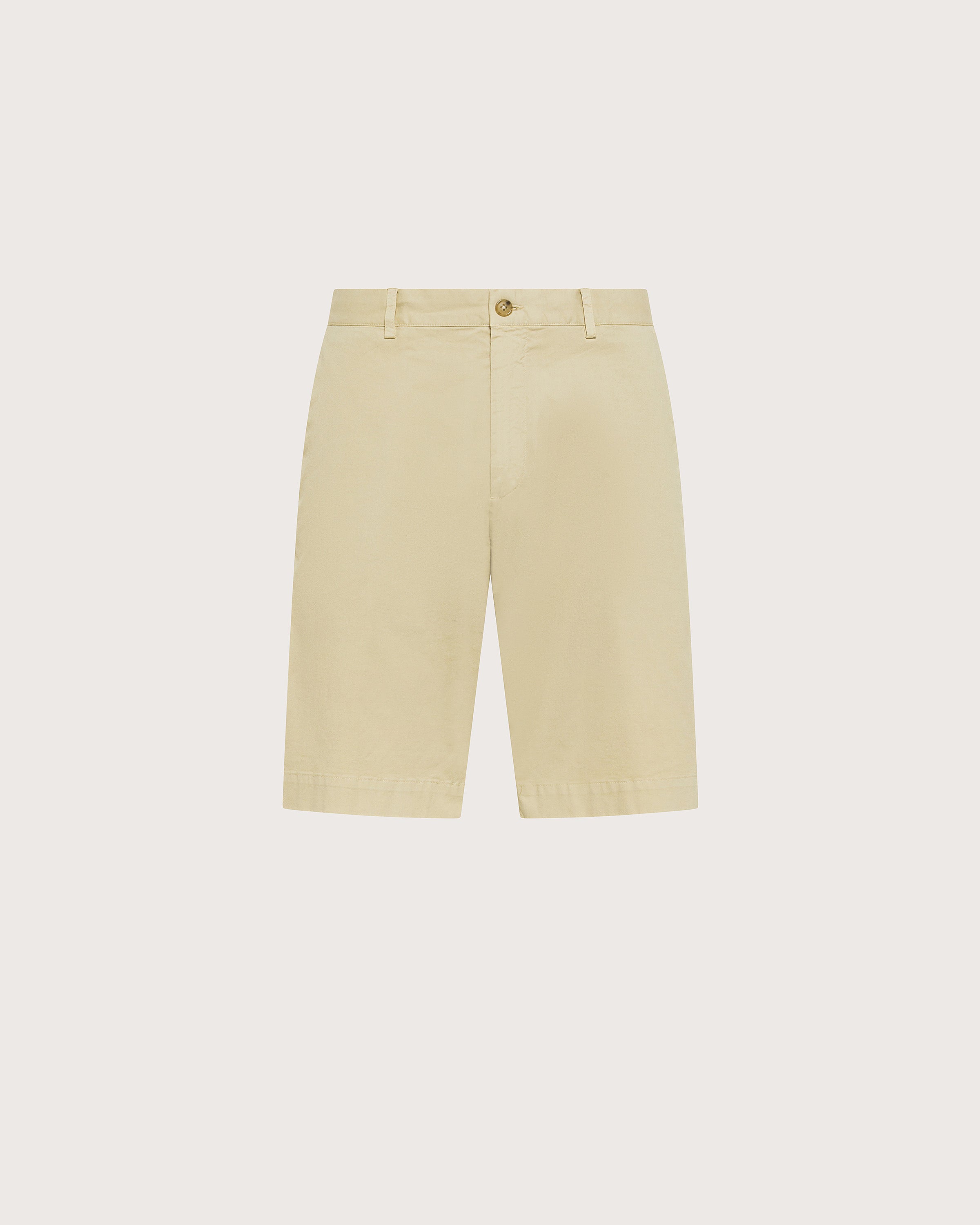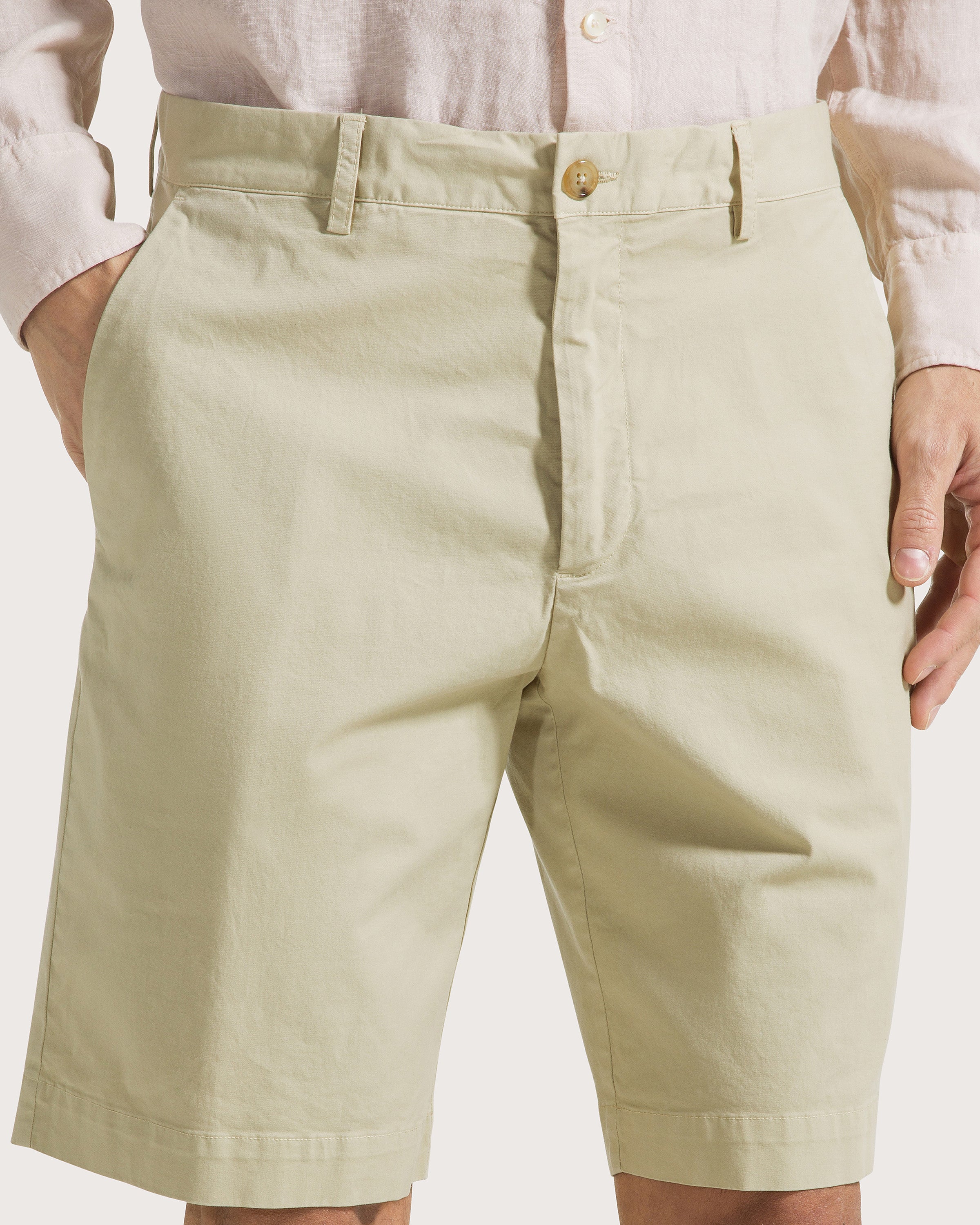 Bermuda con chiusura zip, tasca all'americana e tasca doppio filetto con bottone sul retro