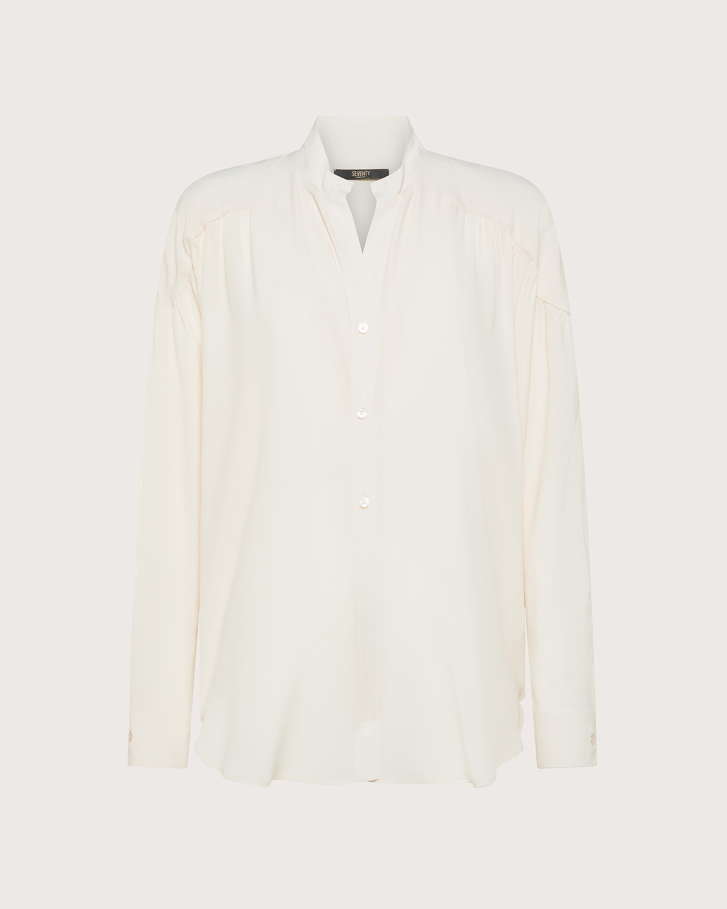 Camicia dal fit ampio realizzata in crêpe misto seta. Maniche lunghe e dettagli pinces superiori.