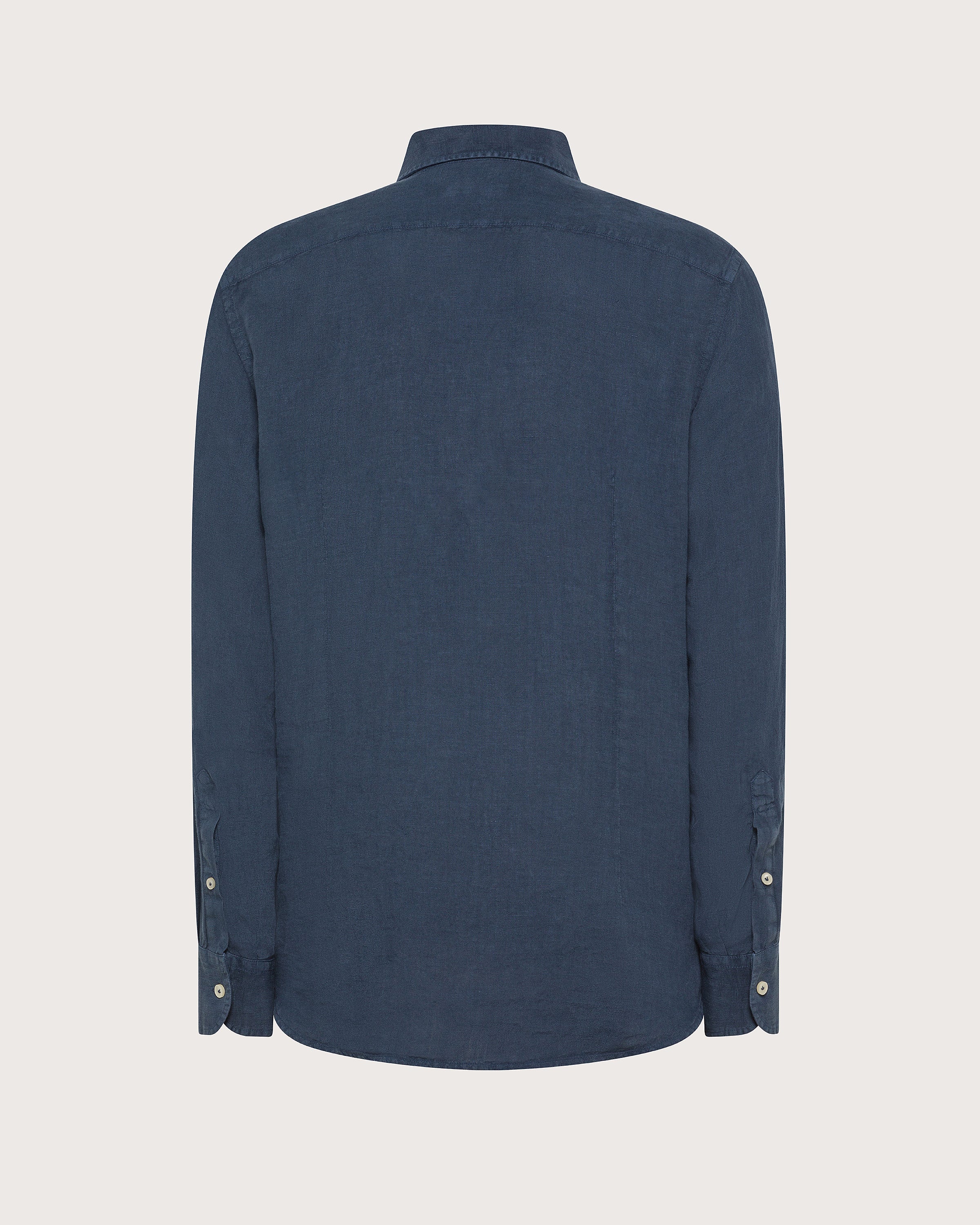 Camicia regular fit realizzata in lino leggero tinto old. Collo francese e maniche lunghe con bottone sul polsino. Chiusura frontale con abbottonatura.