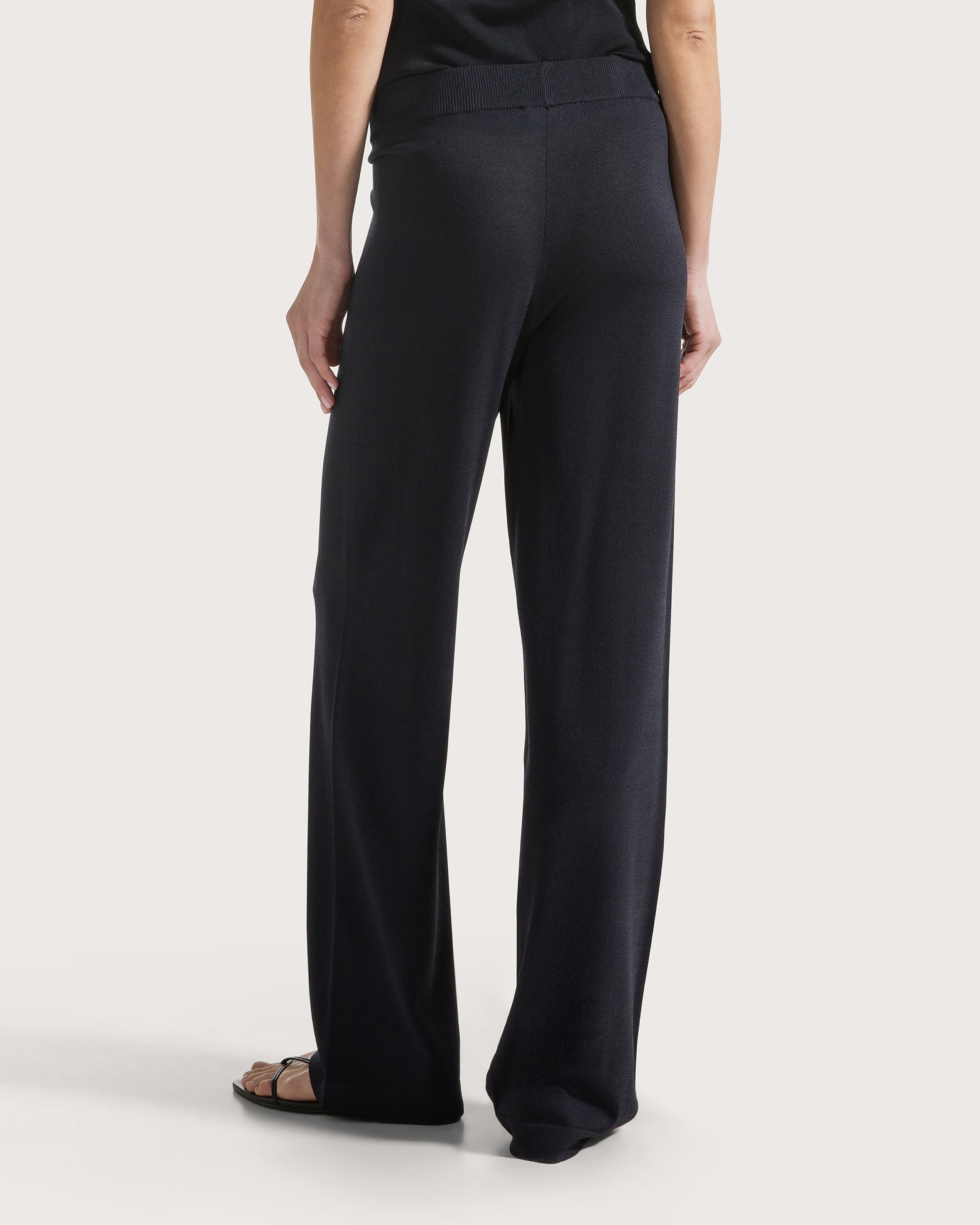 Pantalone lungo in viscosa punto tessuto con vestibilità morbida.