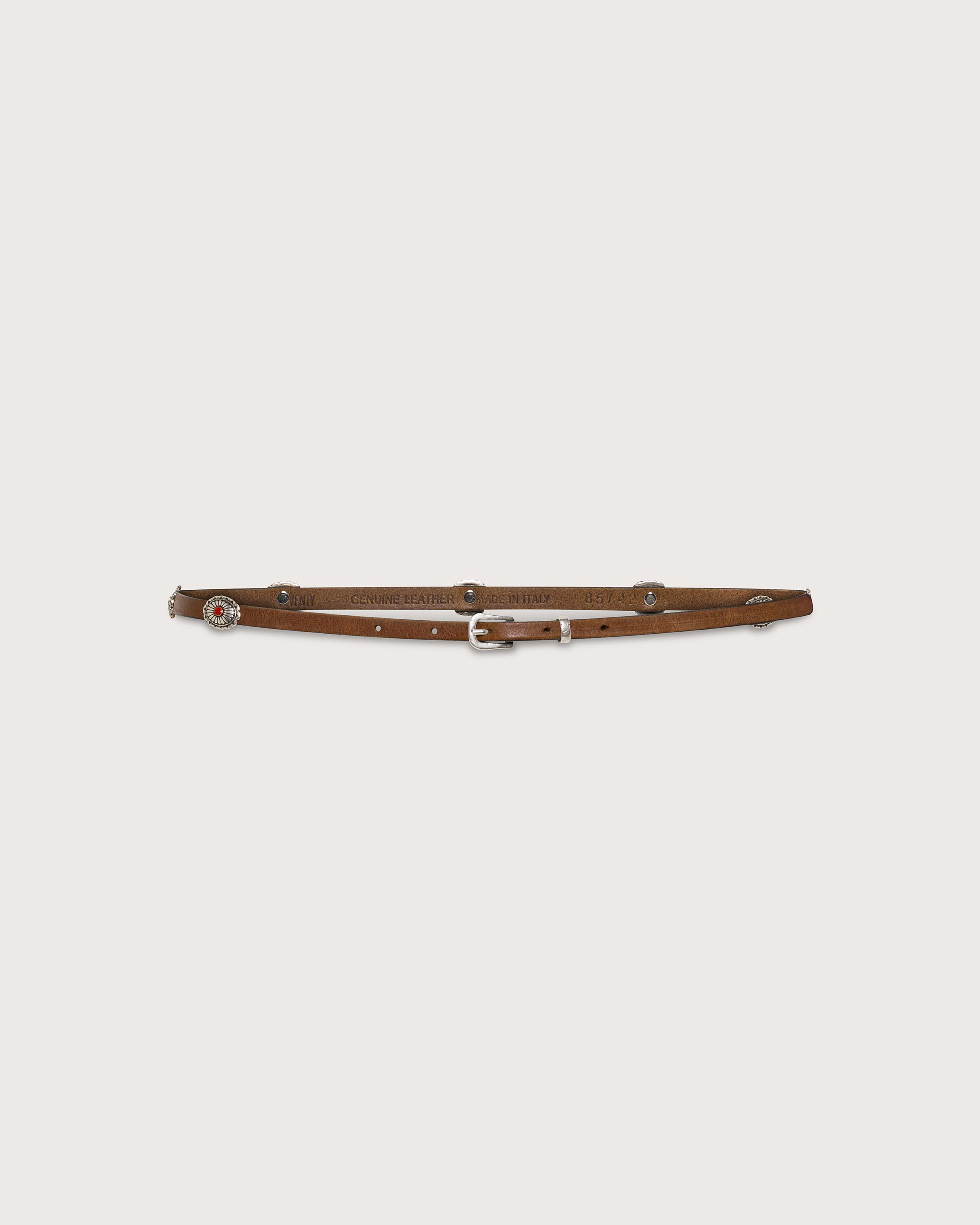 Cintura sottile con applicazione di piccole fibbie e pietre colorate.