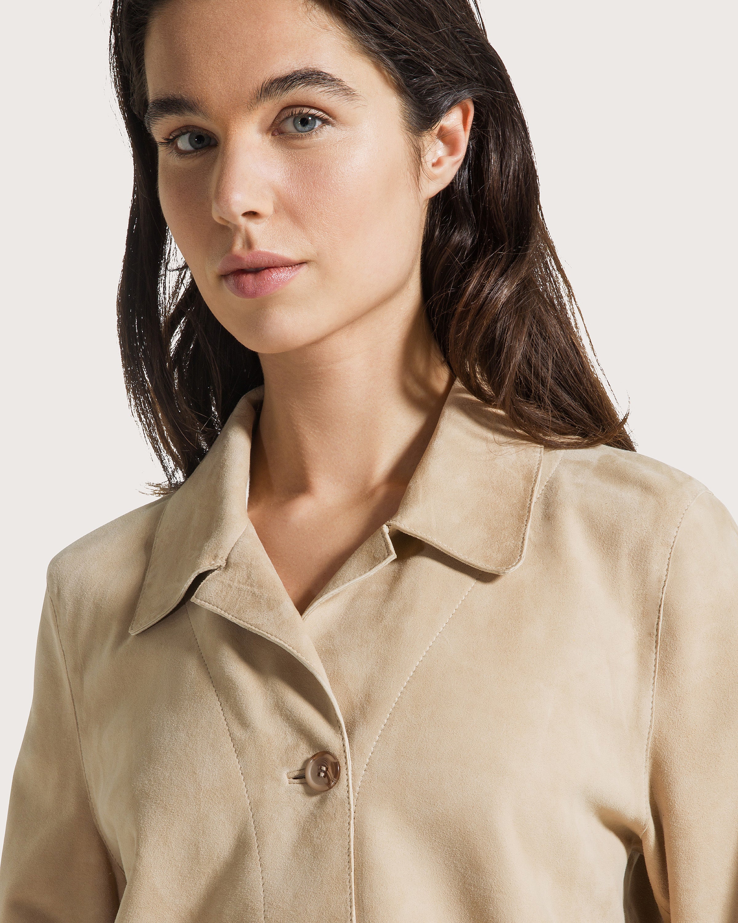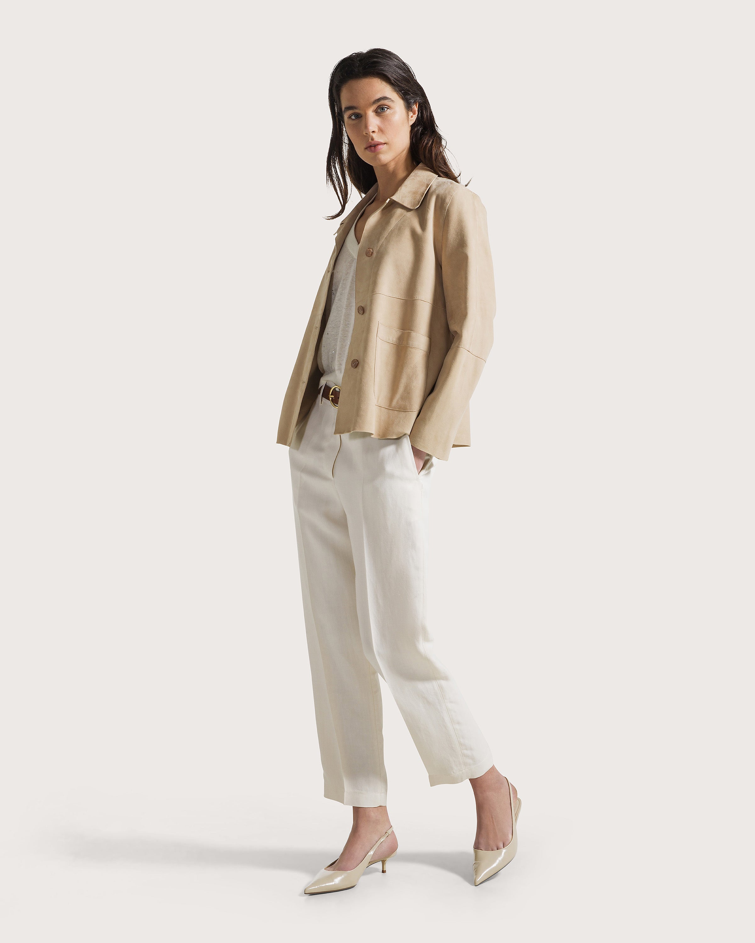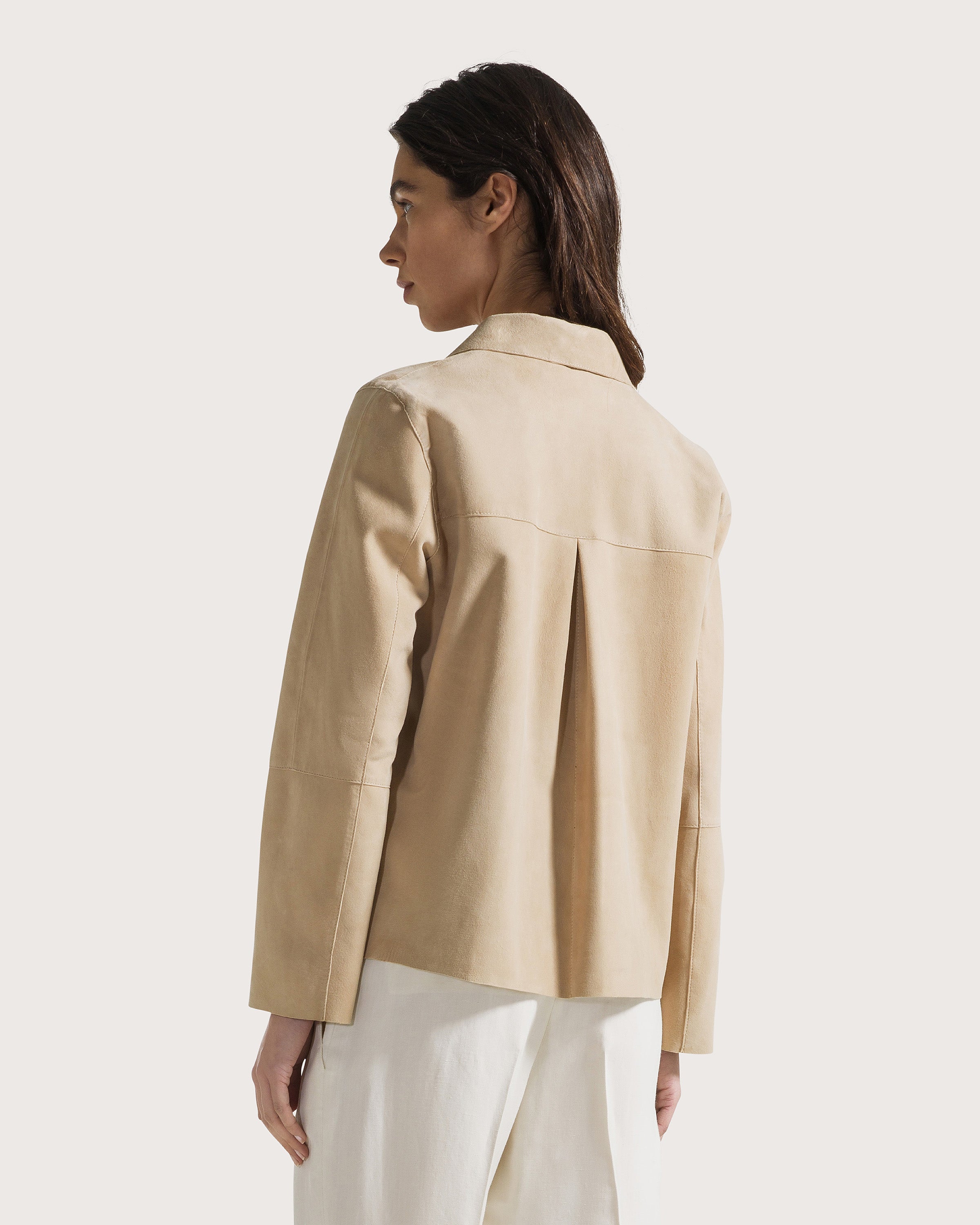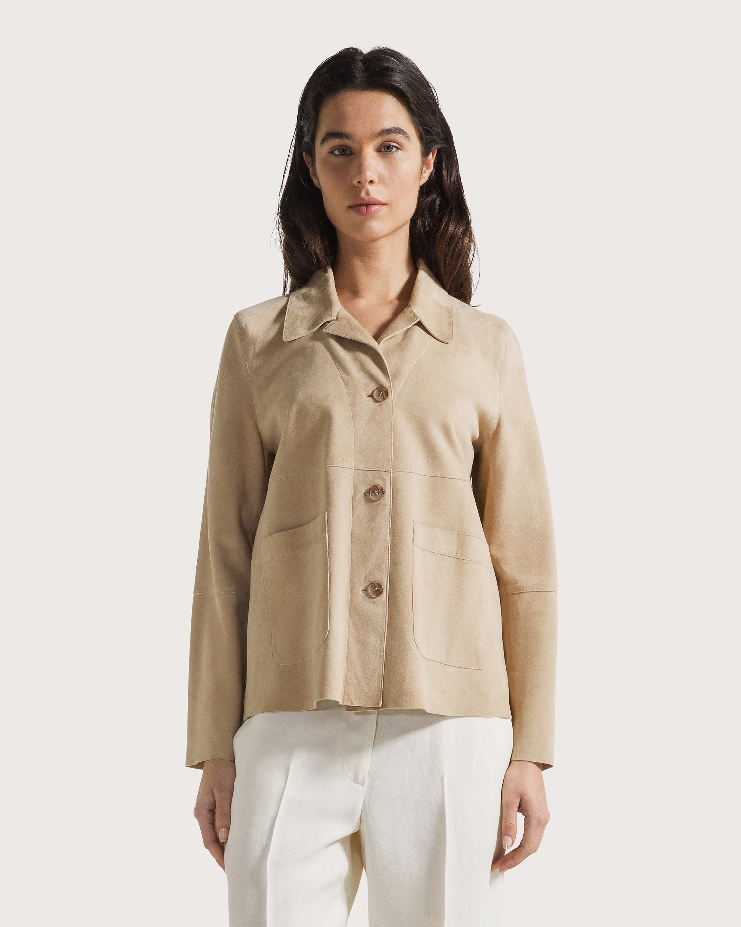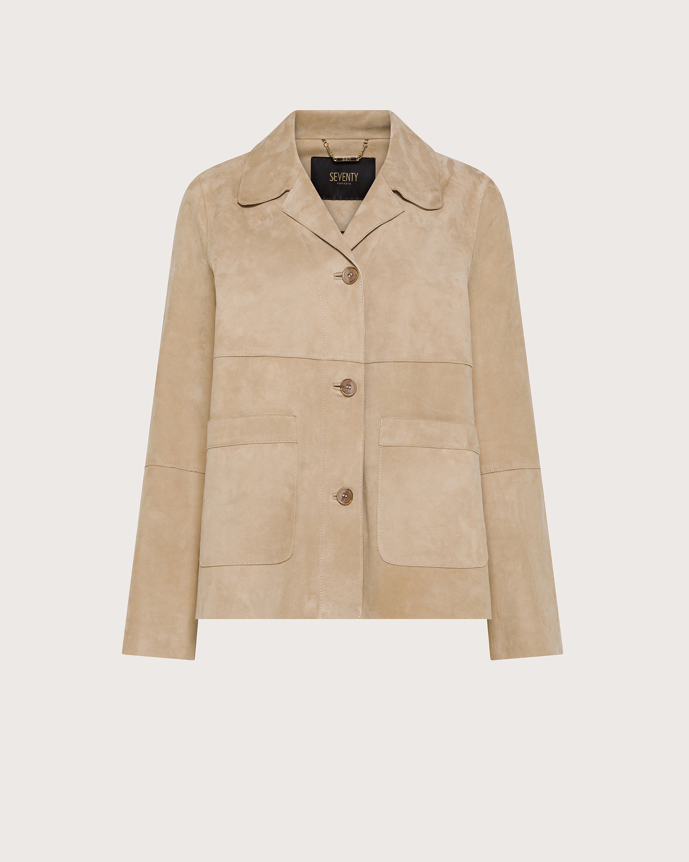 Giacca suede leggero con tasche a toppa.