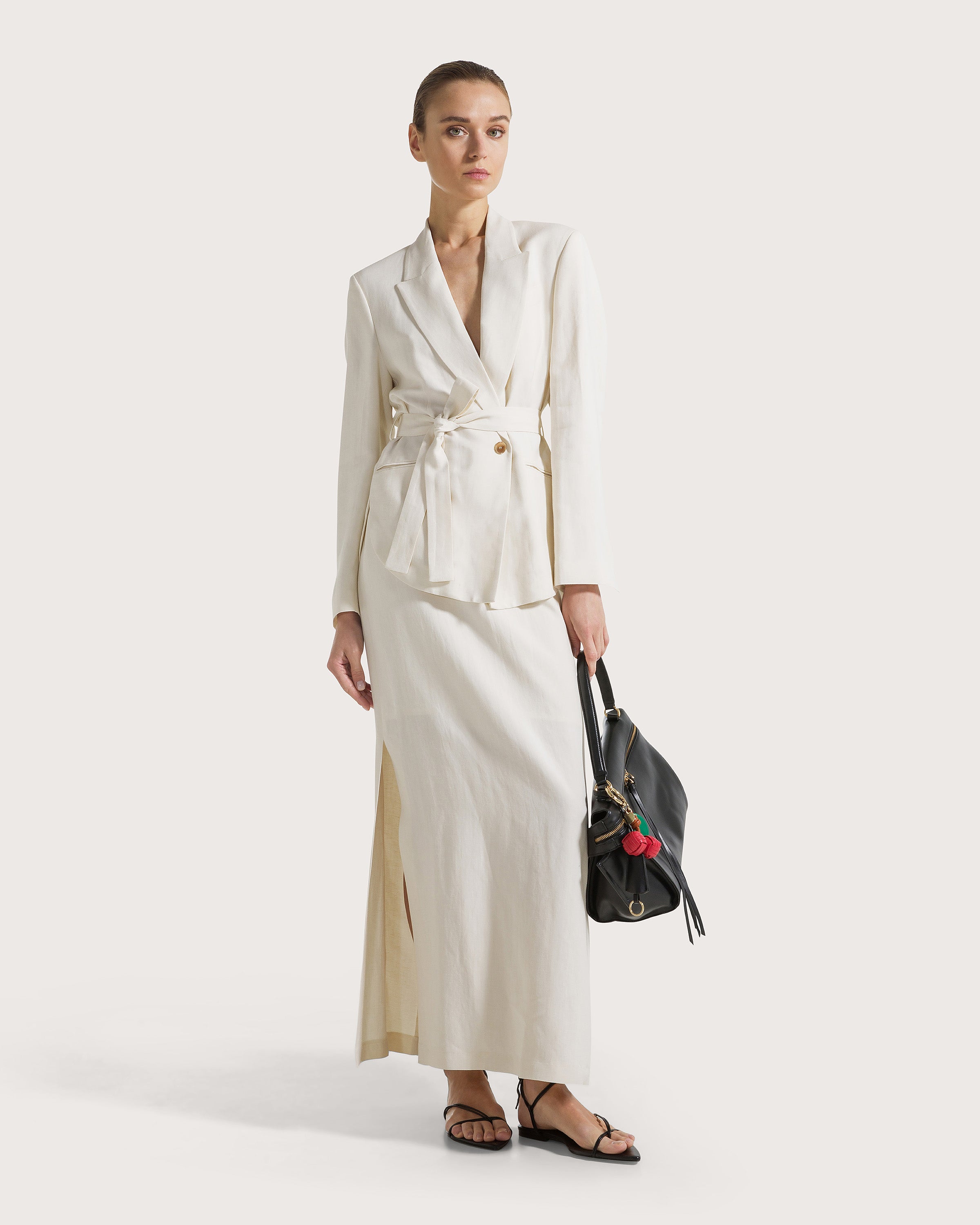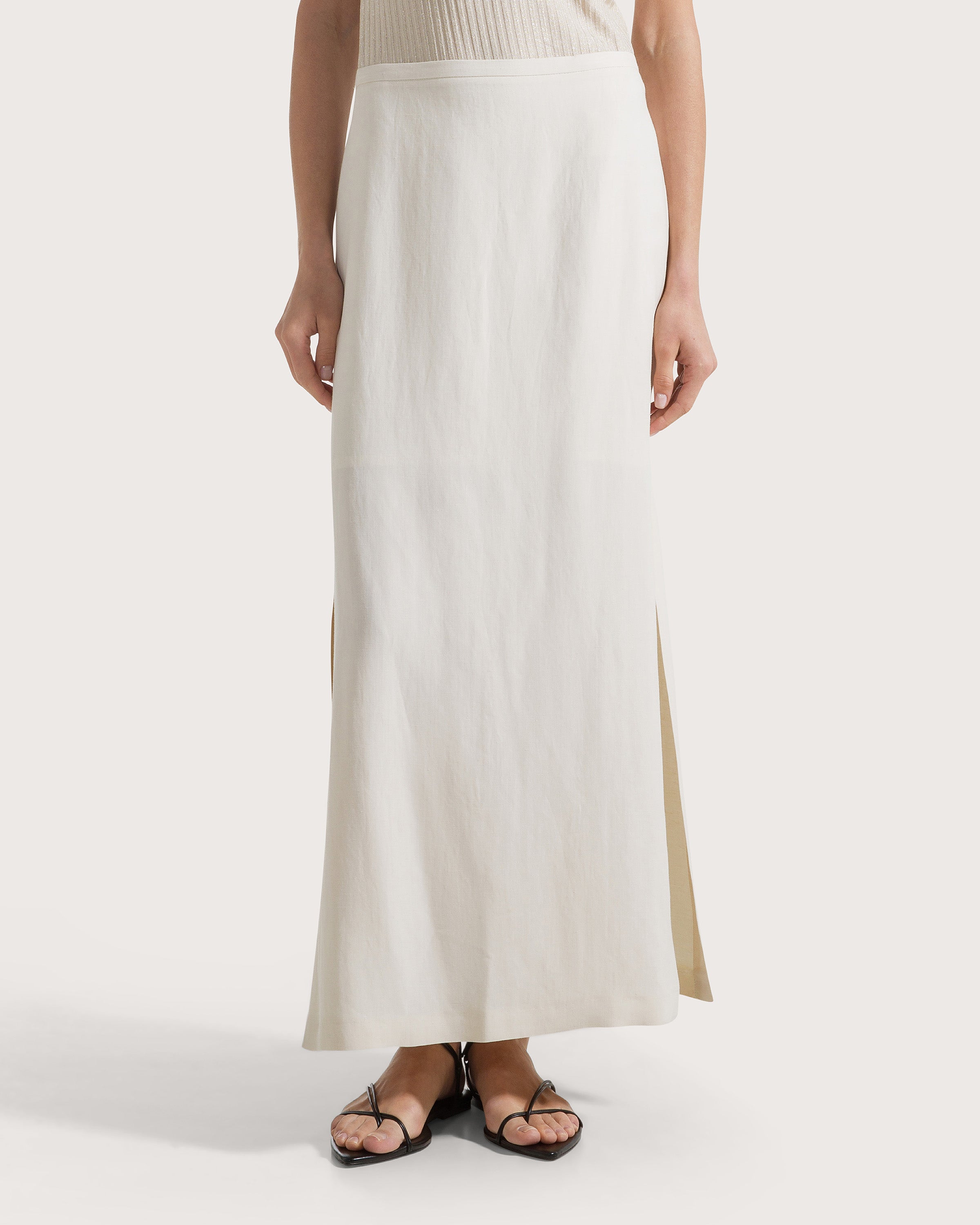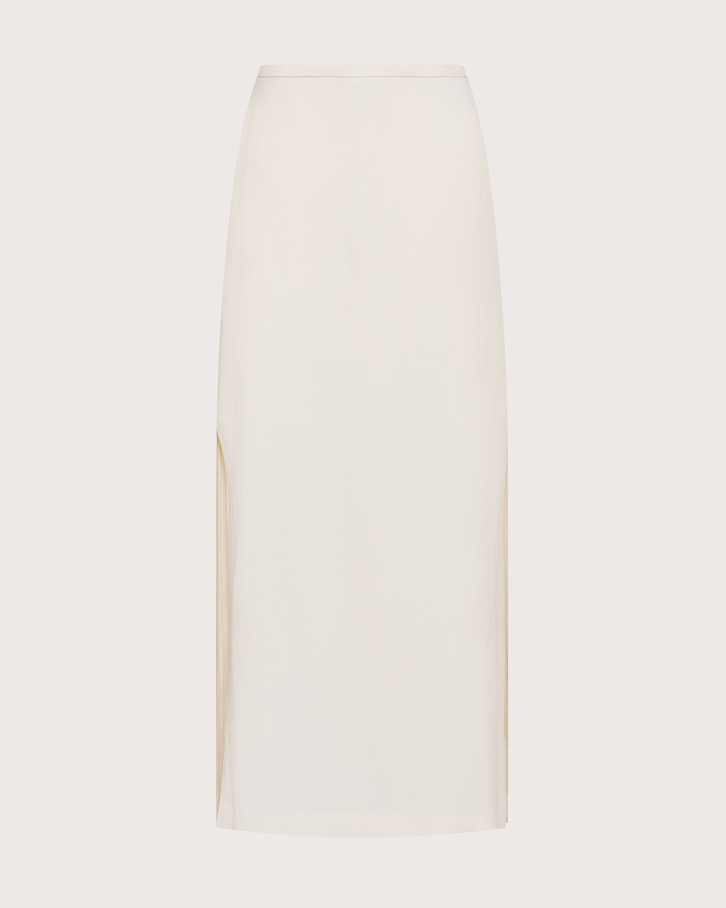 Gonna lunga con spacco in viscosa di lino e chiusura zip invisibile in vita.