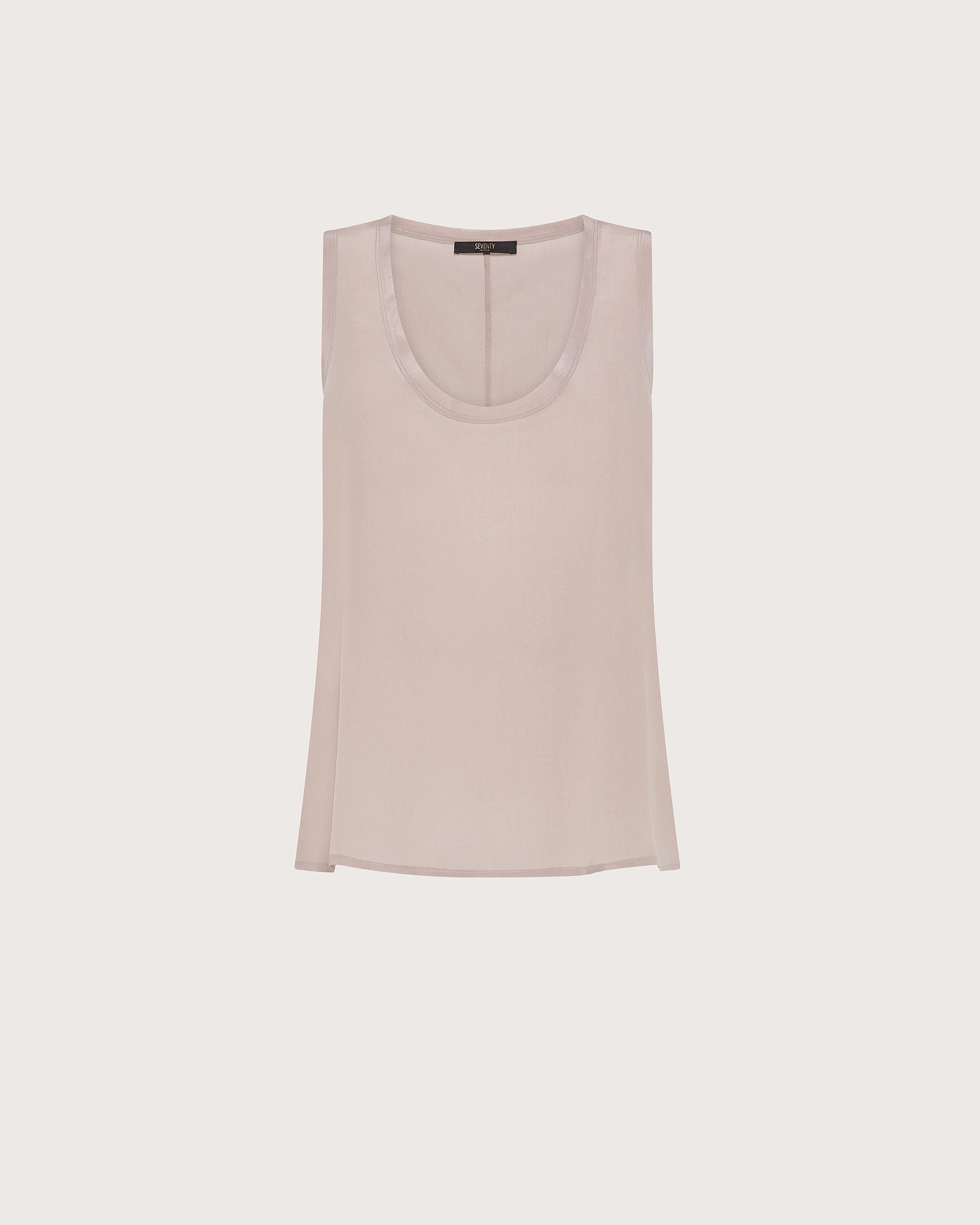 Top smanicato misto seta con ampio scollo.