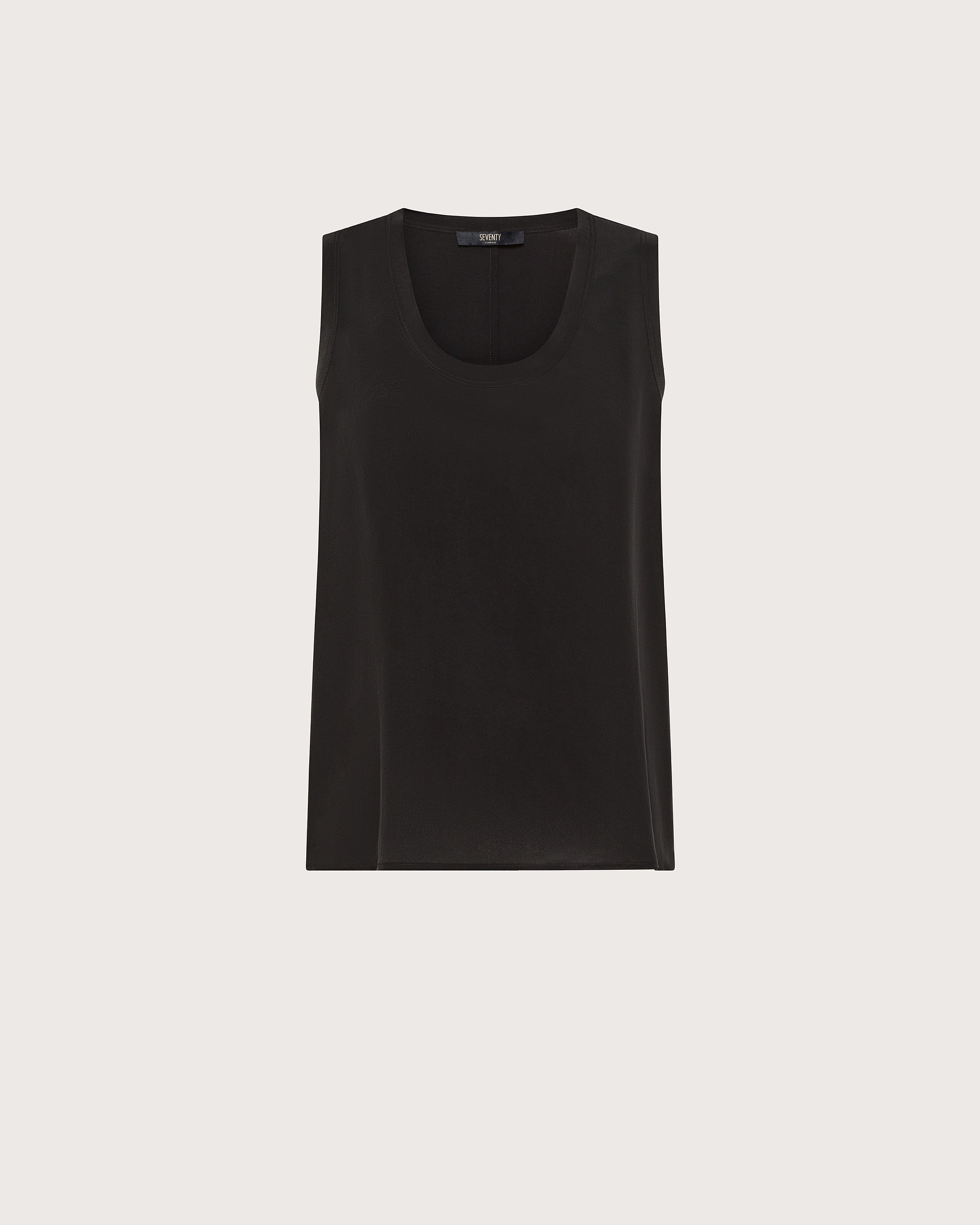 Top smanicato misto seta con ampio scollo.