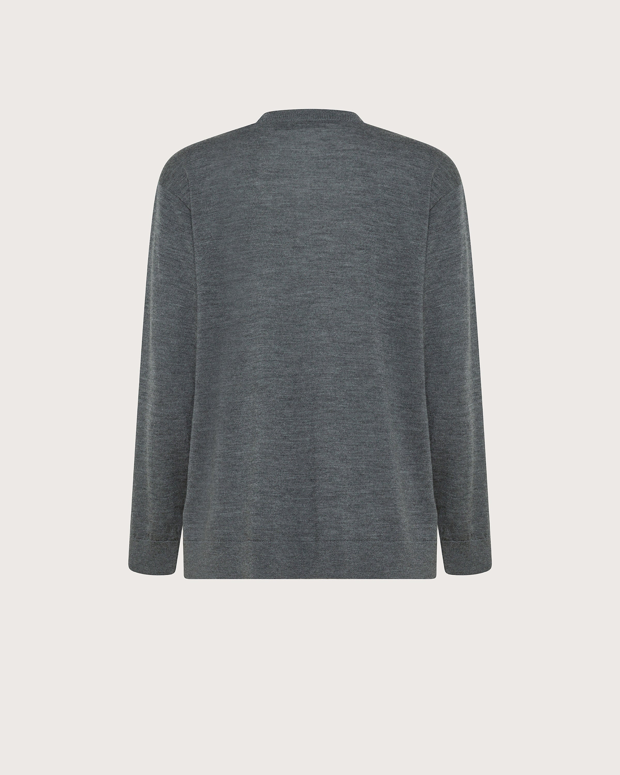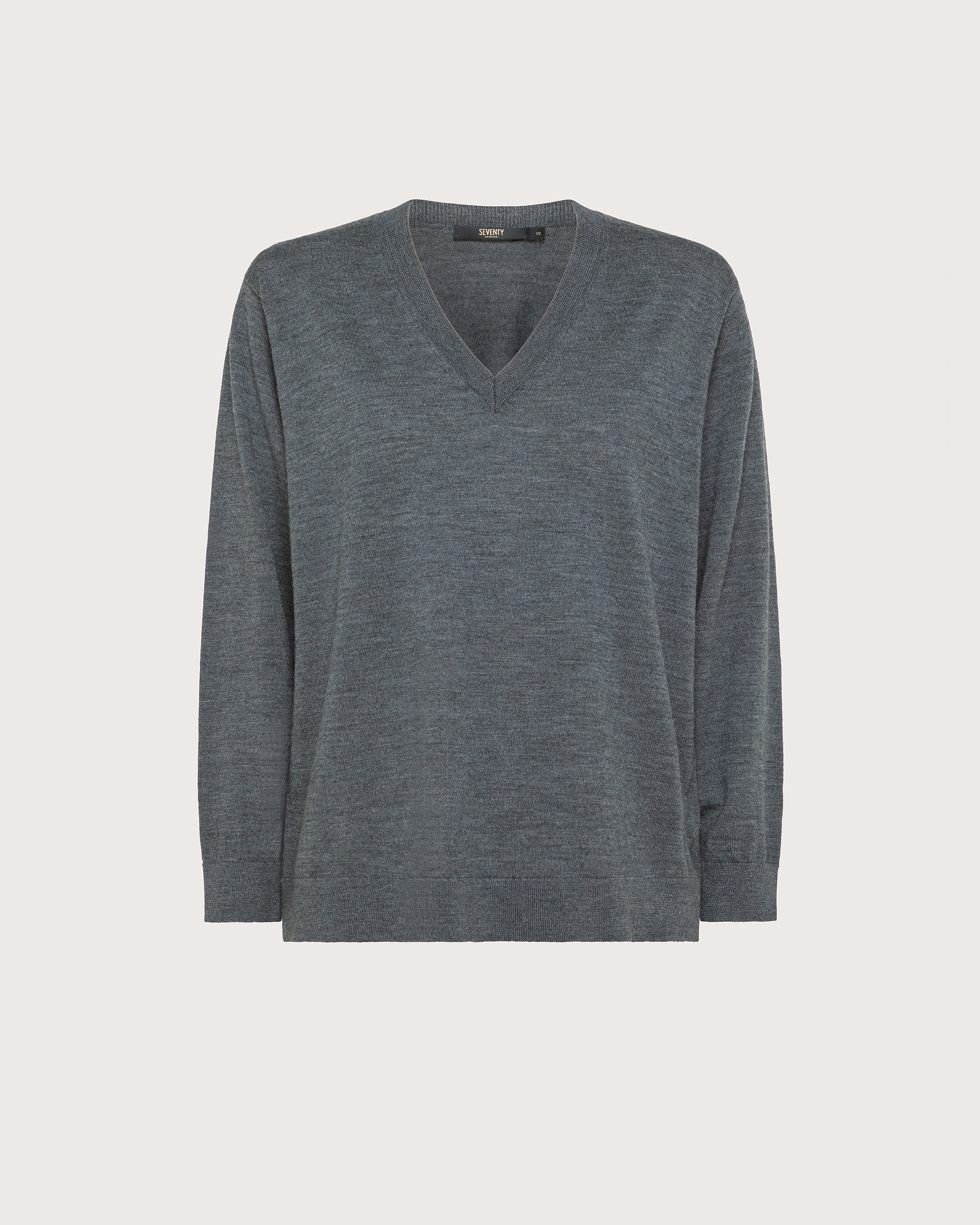 Maglia scollo V realizzata in lana merinos. Linea leggermente oversize.