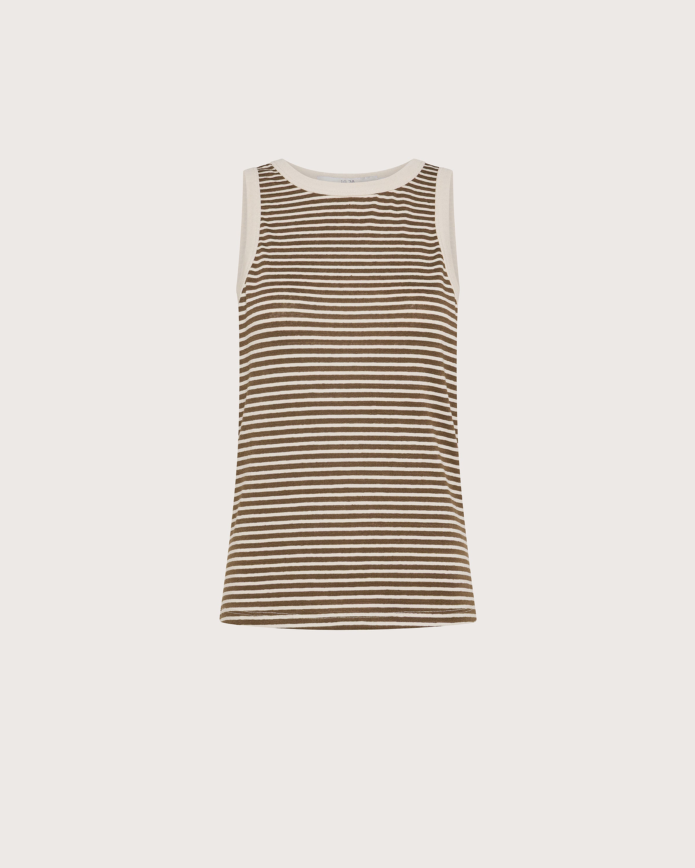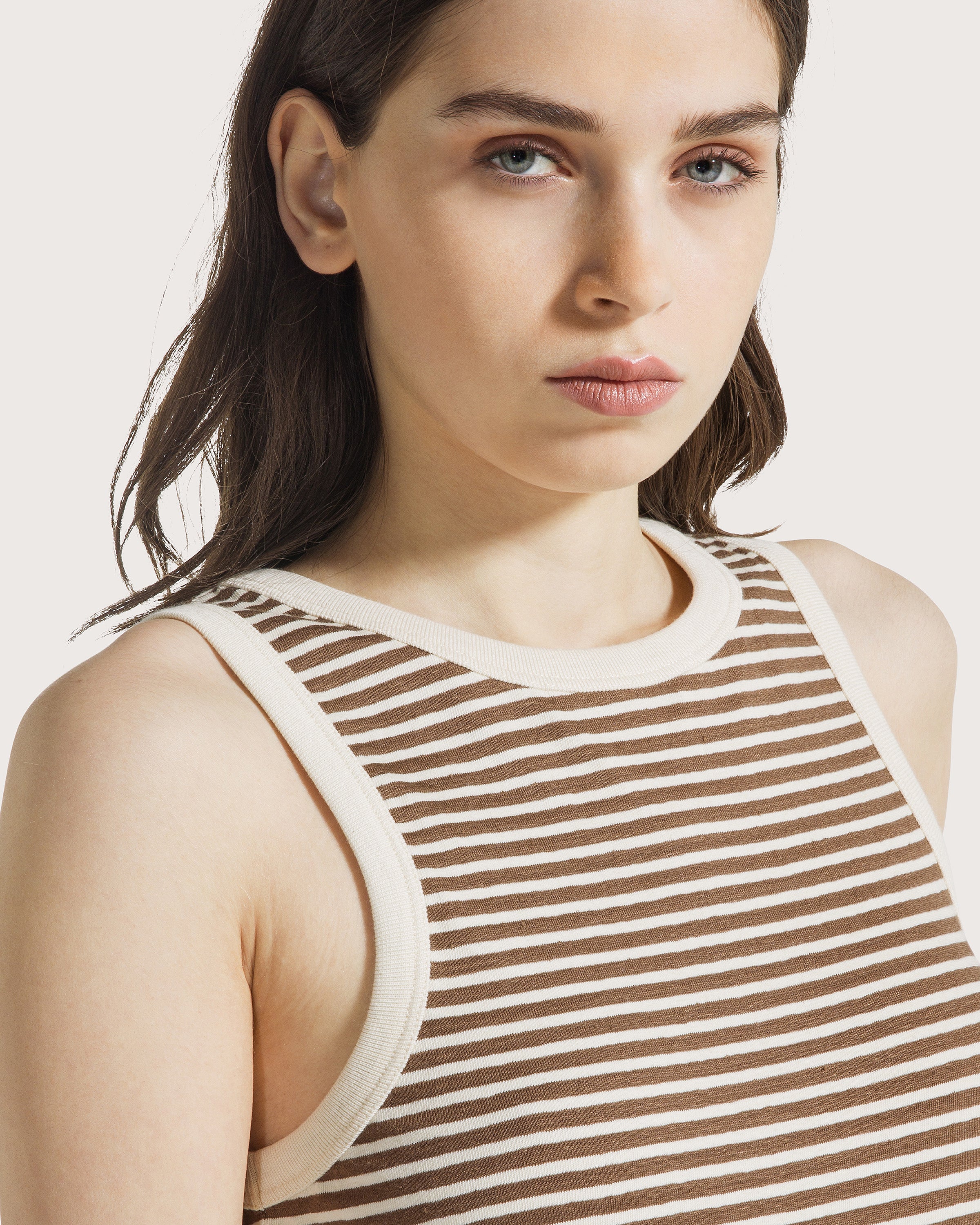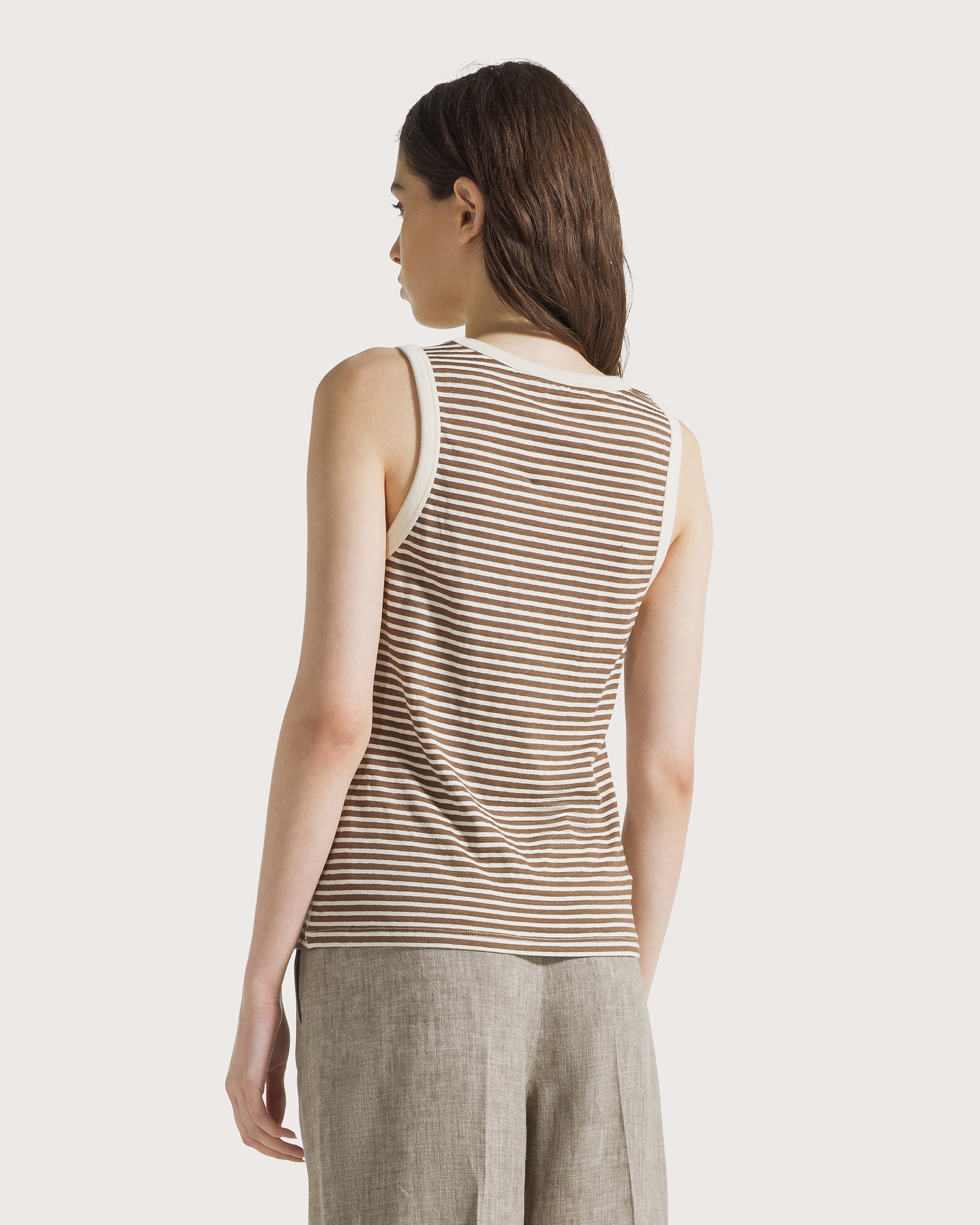 Canotta in jersey di cotone lino rigato con dettaglio profilature in tinta unita.