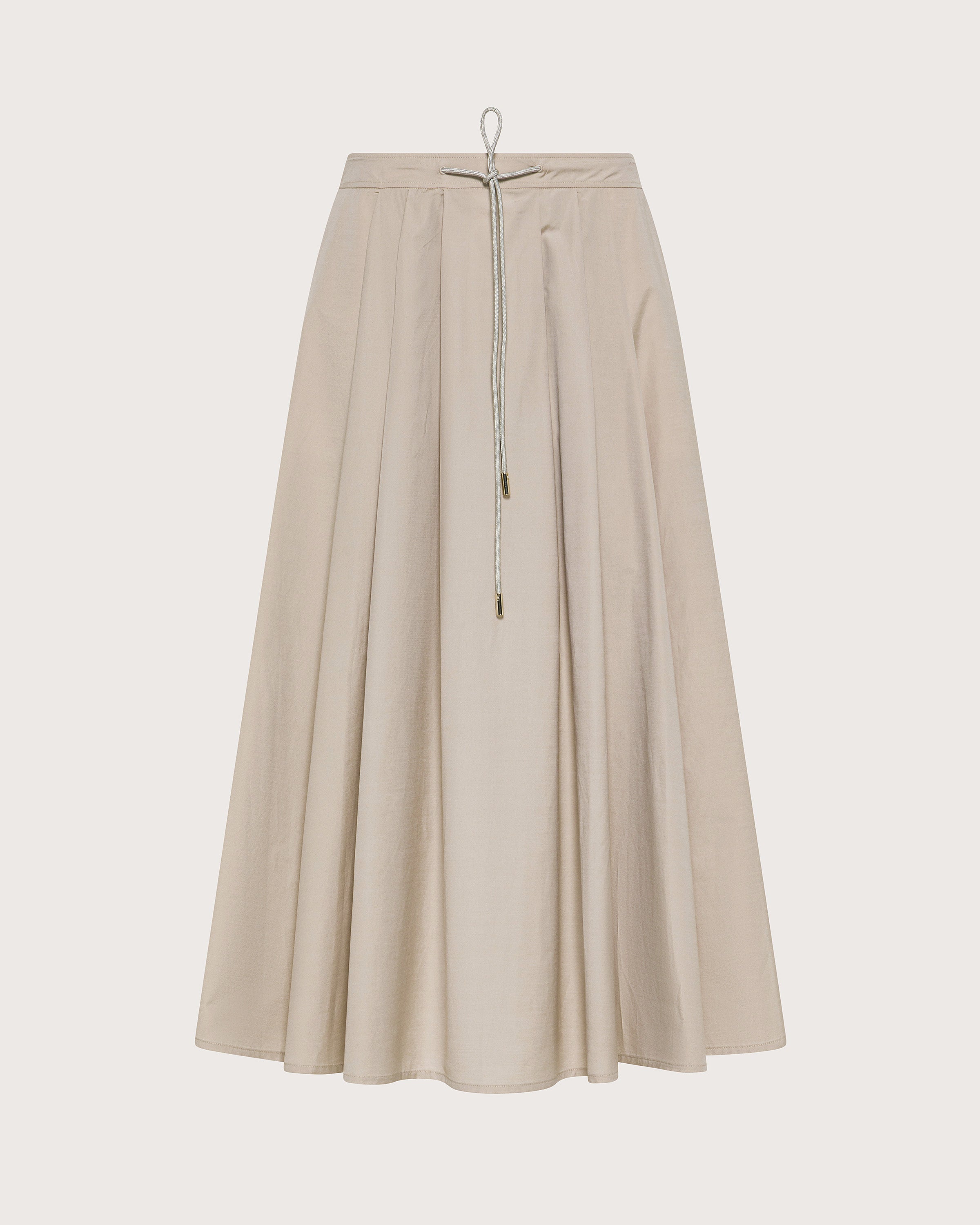 Gonna midi ampia in popeline tinto filo effetto taffetas con coulisse in vita, zip invisibile sul retro e tasche laterali.