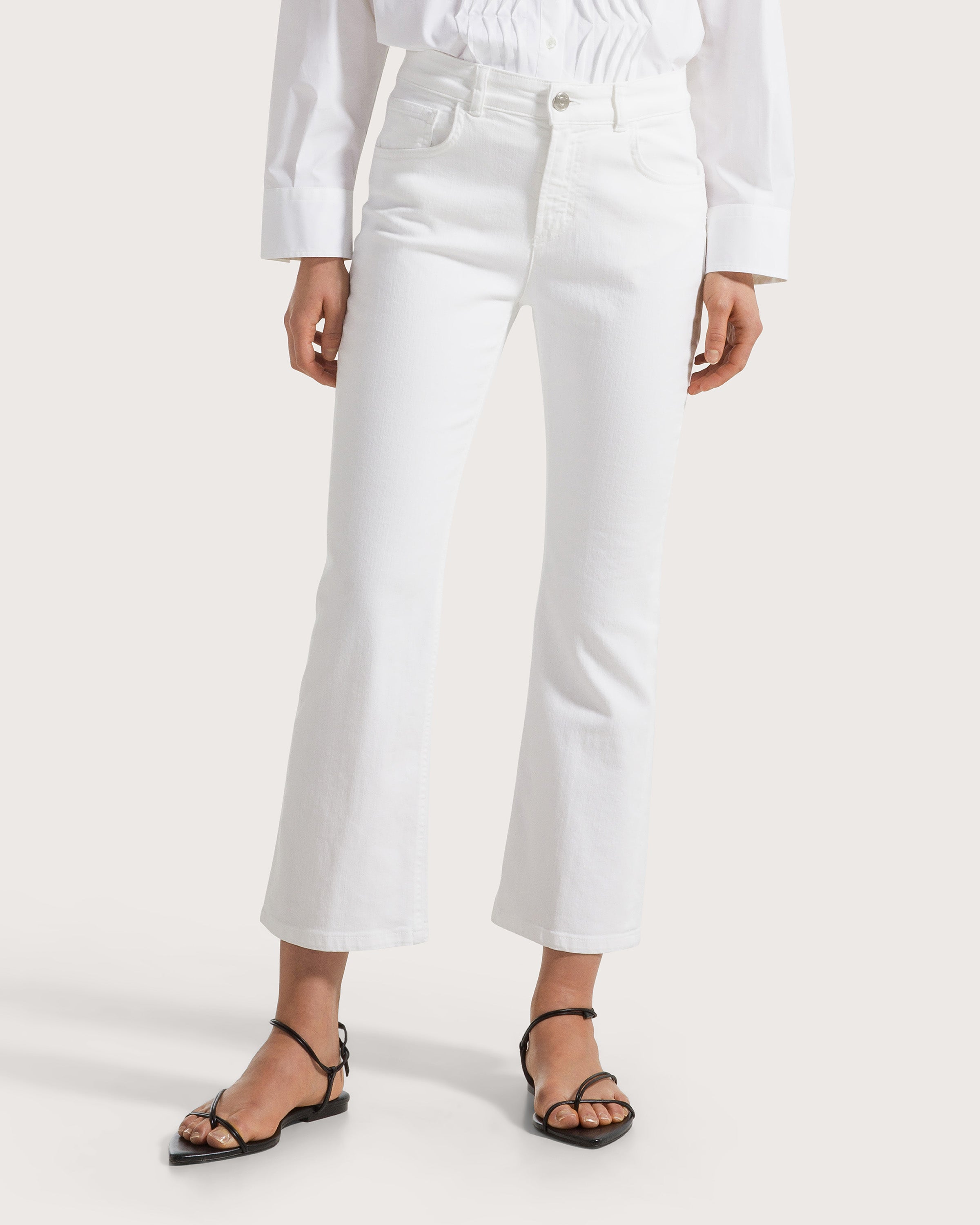 Jeans in bull di cotone stretch con fondo leggermente a zampa alla caviglia