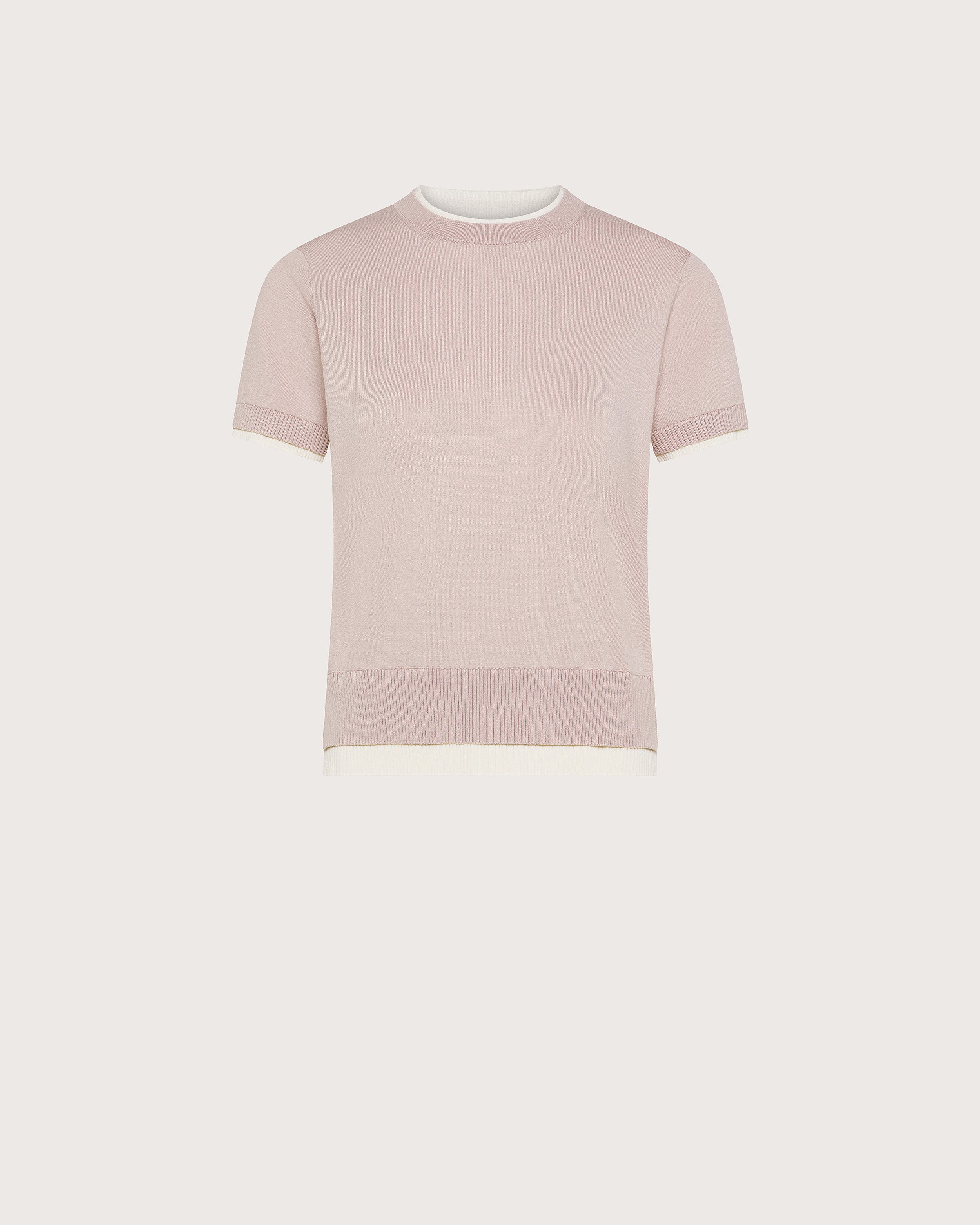 Maglia girocollo mezza manica in viscosa con dettaglio profilatura in contrasto colore.