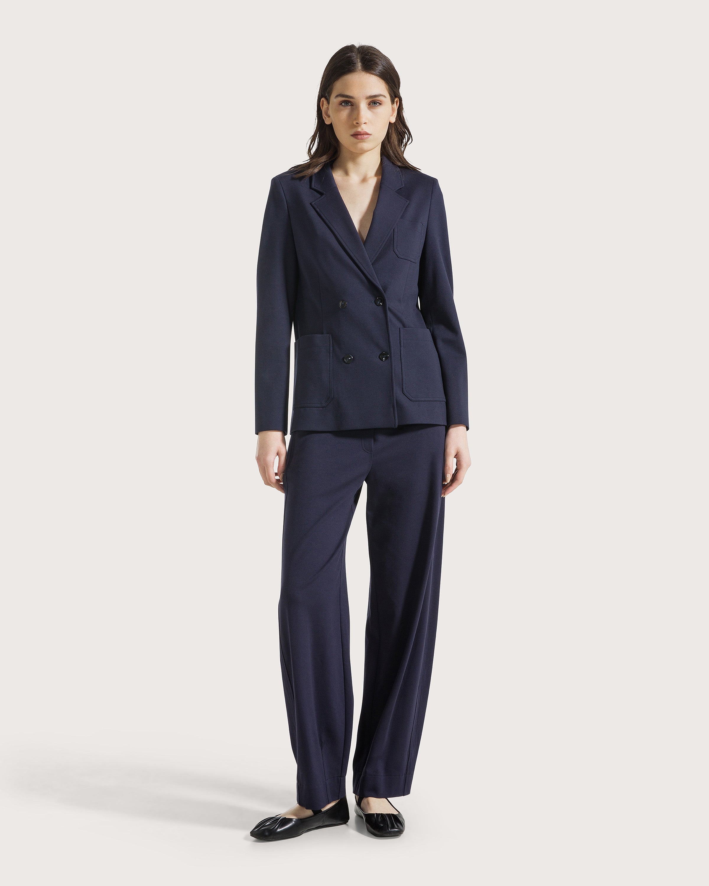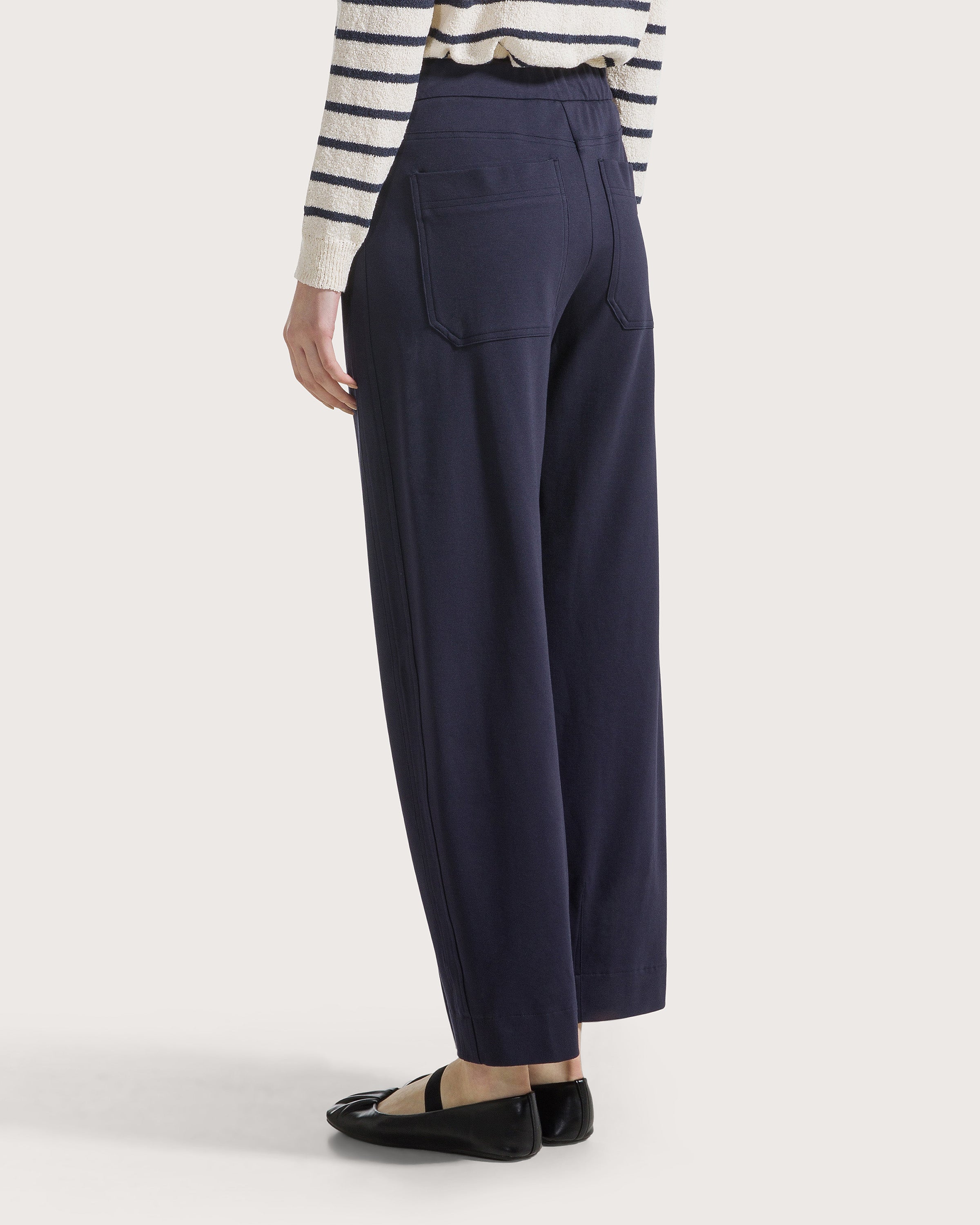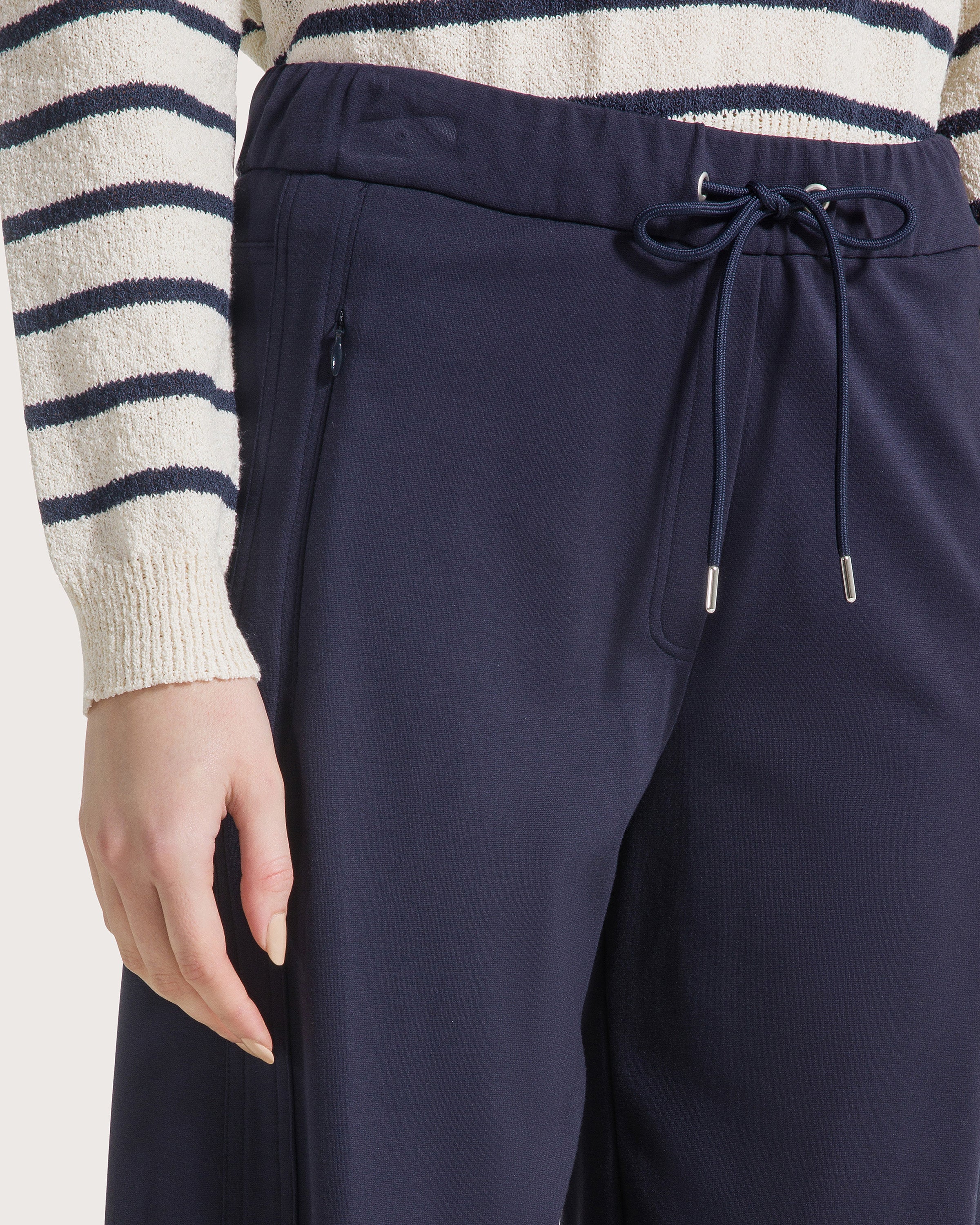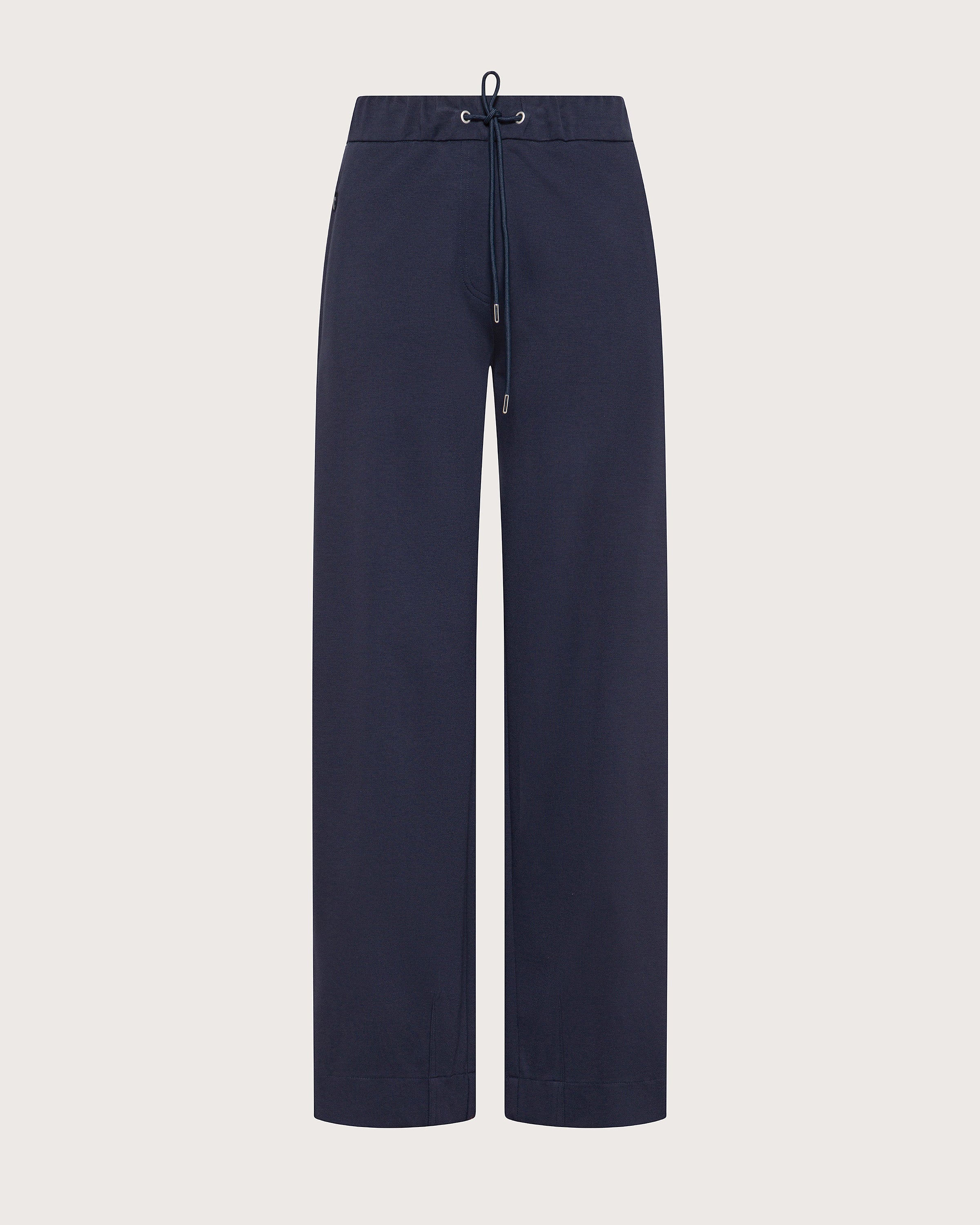 Pantalone jogging in punto stoffa con elastico in vita e laccio regolabile.