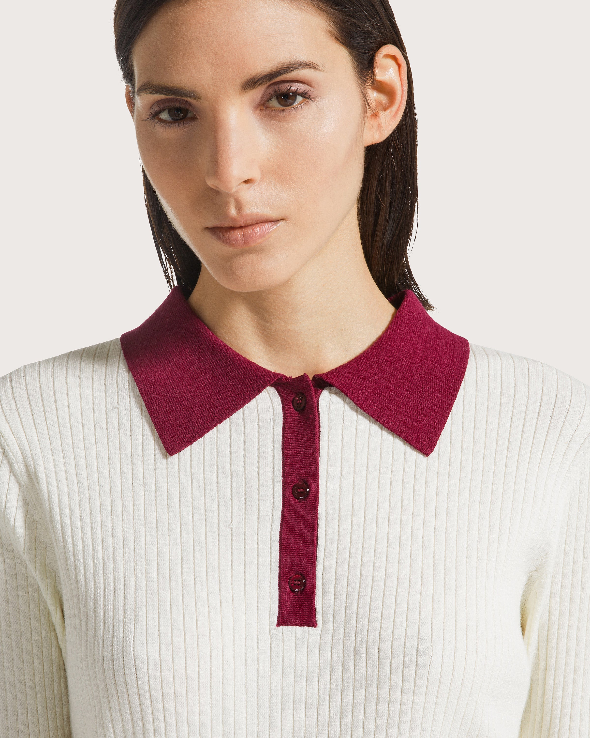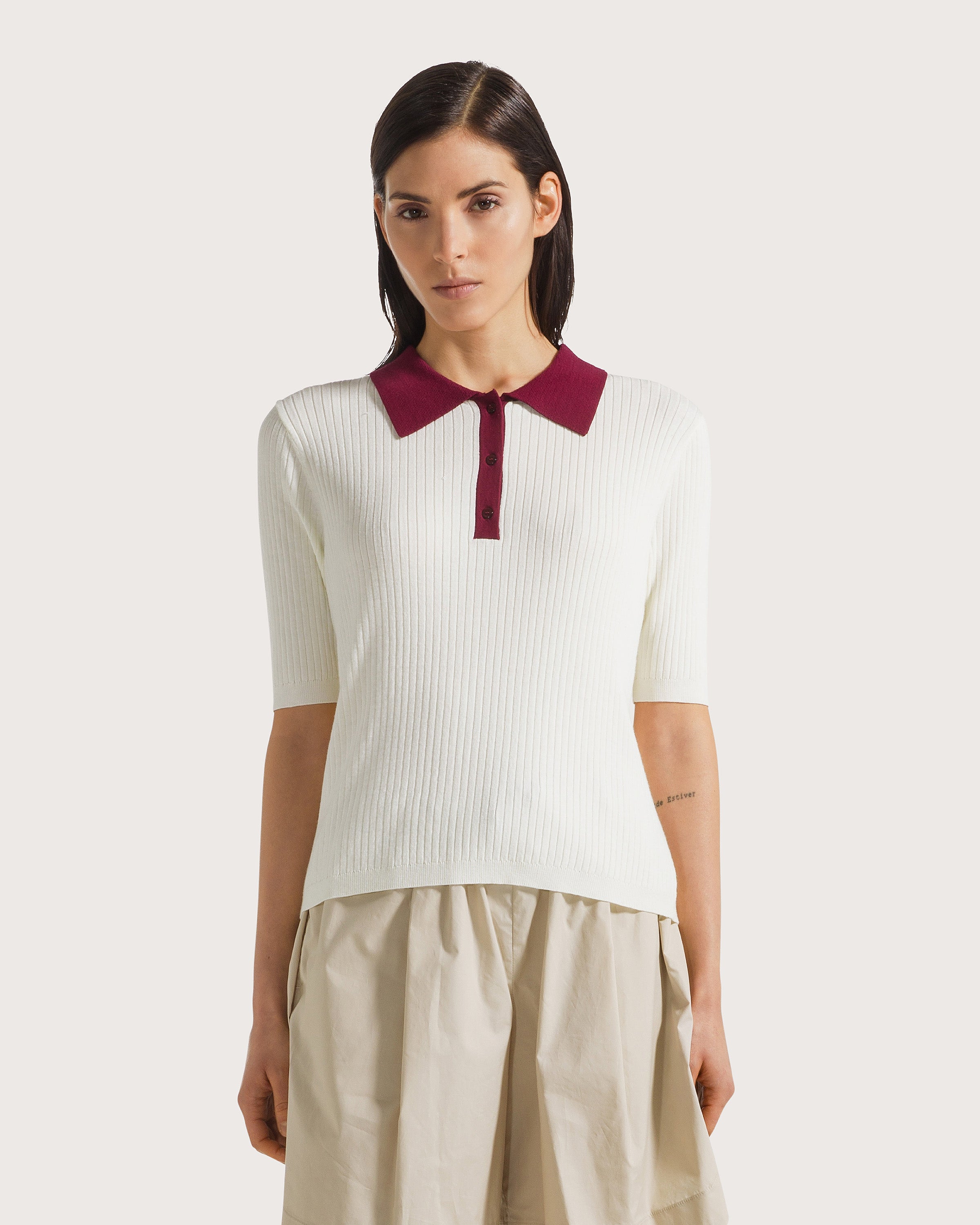 Polo mezza manica in viscosa con dettaglioprofili in contrasto.