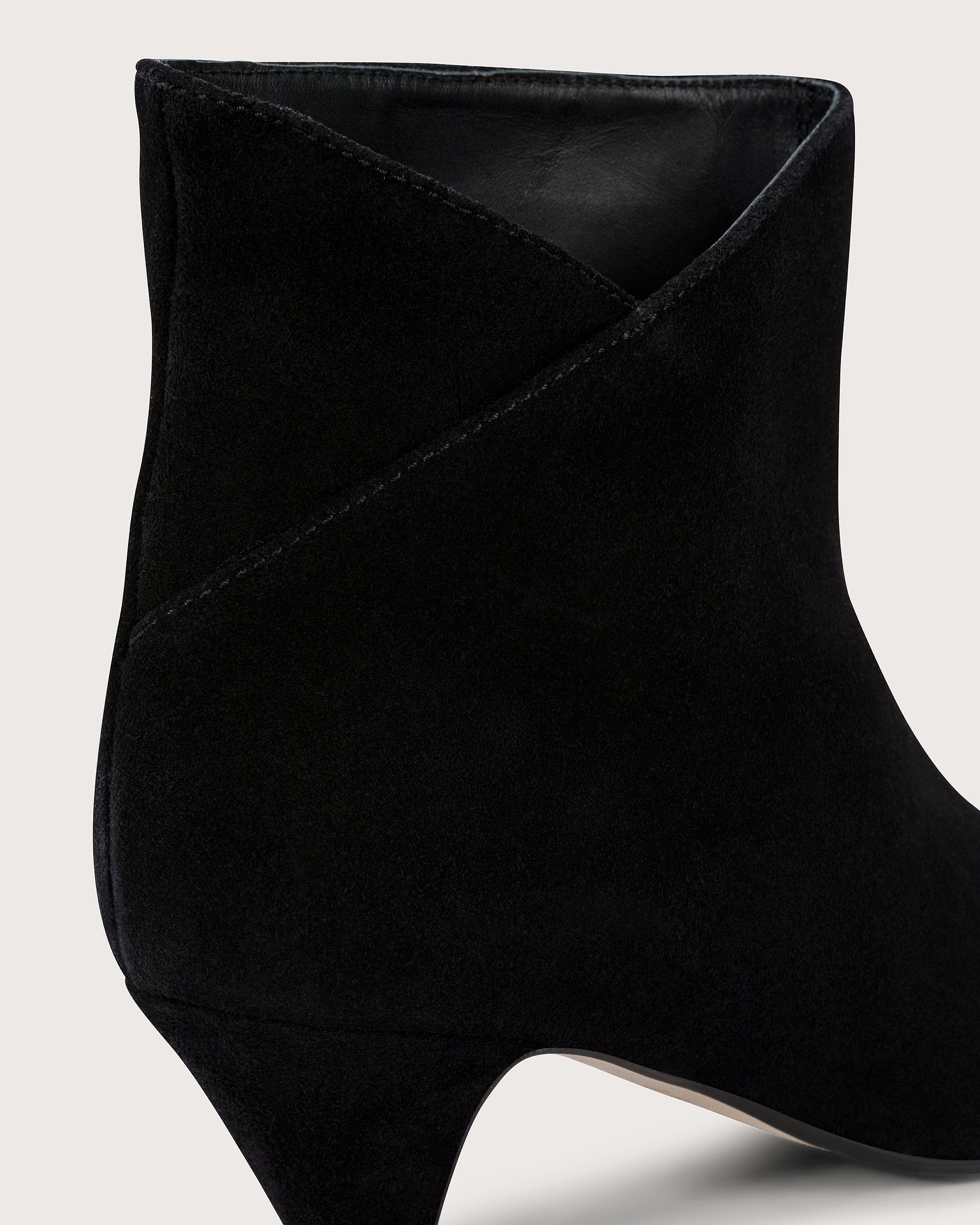 Stivaletto alla caviglia in pelle scamosciata, tacco 2cm. Modello a punta.